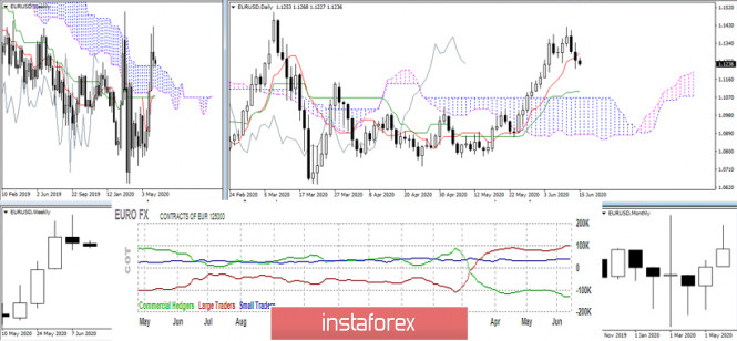 Последний отчет СОТ (Commitments of Traders). Недельные перспективы для EUR/USDИнстаФорекс - Instaforex, 5 лет назад Последний отчет СОТ (Commitments of Traders). Недельные перспективы для EUR/USD По данным последнего отчета СОТ (09.06.20), показатель открытого интереса по евро вновь увеличился, на момент отчетности он составил 592,915. Это означает, что евро продолжает пользоваться спросом, а текущие тенденции в долгосрочной перспективе пока будут сохранены. Нужно отметить, что группа Commercials за отчетный период активно набирала позиции по обоим направлениям, но при этом позиции short явно были в приоритете (short + 20,642 – long + 4,122). Тем временем отчетность участников рынка (Non-Commercial и Dealer Intermediary), отличающихся большей мобильностью и поддержкой действующего распределения сил, сохраняет разрыв в пользу игроков на повышение, процентный разрыв планомерно продолжает увеличиваться (31,1 против 15 – 55,7 против 6,4). Основной вывод Отчетная статистика глобальных игроков рынка сохраняет приверженность сложившейся дневной восходящей тенденции, но при этом ожидание полноценной коррекции было усилено. Данное обстоятельство нашло своё отражение в снижении, обозначенном в конце прошлой недели. Текущая неделя должна выявить масштабы зарождающейся коррекции. Техническая картина На неделях обозначено торможение, но ярко выраженного разворотного характера недельная свеча не имеет. Пара осталась в бычьей зоне относительно действующего недельного облака Ишимоку, которое в ближайшее время сохранит роль поддержки (1,1225). Формирующееся недельное облако готово стать бычьим, при этом на неделях зародился золотой крест. На дневном таймфрейме формирующееся бычье облако продолжает расширение. Восходящий дневной тренд за время прошлой недели обозначил новый максимум, но в конце недели пара приступила к коррекционному снижению, потеряв при этом поддержку дневного краткосрочного тренда. На текущий момент основную поддержку оказывает верхняя граница недельного облака (1,1225), далее в случае развития коррекции ключевое значение будут иметь поддержки, объединившие свои силы в районе 1,1100-1,1065 (нижняя граница недельного облака + дневной Киджун + дневное облако). Среди ближайших восходящих ориентиров при восстановлении восходящего тренда можно отметить максимальный экстремум 1,1496, исполнение дневной цели на пробой дневного облака (1,1499). Ключевые сопротивления младших таймов в настоящий момент расположены на 1,1270 (центральный Пивот-уровень) и 1,1316 (недельная долгосрочная тенденция). В случае обновления минимума и продолжения снижения поддержки классических Пивот-уровней расположены сегодня на 1,1198 – 1,1142 – 1,1070. Ichimoku Kinko Hyo (9.26.52), Pivot Points (классические), Moving Avarage (120) Материал предоставлен компанией InstaForex - www.instaforex.com |