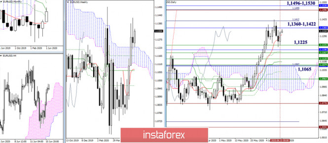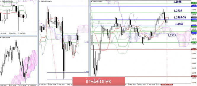 EUR/USD и GBP/USD 16 июня – рекомендации технического анализаИнстаФорекс - Instaforex, 5 лет назад EUR/USD и GBP/USD 16 июня – рекомендации технического анализа Экономический календарь (время московское) 09:00 Средний доход с учетом премий (Великобритания) 09:00 Уровень безработицы (Великобритания) 09:00 Изменение числа заявок на пособие по безработице (Великобритания) 09:00 Изменение занятости населения (Великобритания) 09:00 Индекс потребительских цен (Еврозона) 12:00 Индекс экономических настроений от ZEW в Германии 12:00 Индекс экономических настроений от ZEW в Еврозоне 12:00 Уровень заработной планы (Еврозона) 15:30 Розничные продажи (США) 16:15 Объём промышленного производства и коэффициент загруженности промышленных мощностей (США) 17:00 Выступление главы ФРС EUR/USD За прошлые сутки пара сформировала достаточно результативный отбой от встреченной зоны поддержек, вернув при этом дневной краткосрочный тренд, сегодня он расположен на 1,1309, на сторону игроков на повышение. Восстановление восходящего тренда сейчас затрудняет ряд сопротивлений, во главе с месячным Киджуном (1,1360). Тем не менее в случае обновления максимума прошлой недели (1,1422) внимание и интересы игроков на повышение будут сосредоточены на тестировании важных рубежей 1,1496 (максимум мартовской высокой волны) – 1,1499 (100% отработка дневной цели на пробой облака) – 1,1530 (заключительный рубеж месячного мёртвого креста Ишимоку). Зона поддержек, которая в сложившейся ситуации будет сдерживать развитие медвежьих настроений, сейчас достаточно широкая и объединяет многие сильные уровни старших временных интервалов – 1,1225 – 1,1065 (недельное облако + дневное облако + уровни крестов Ишимоку дневного, недельного, месячного таймов), поэтому победный марш игроков на понижение в ближайшее время вряд ли возможен. Вчера, преодолев сопротивление центрального Пивот-уровня, игроки на повышение решили не просто развивать коррекционный подъём, но и существенно повлиять на дальнейший расклад сил. В итоге пара вернула себе недельную долгосрочную тенденцию. Повышательными ориентирами внутри дня сейчас являются сопротивления классических Пивот-уровней – 1,1360 – 1,1399 – 1,1465. Сегодня ключевые поддержки младших таймов расположены на 1,1294 – 1,1318 (центральный Пивот-уровня дня + недельная долгосрочная тенденция). Работа выше данных уровней обеспечивает бычье преимущество на младших таймах, нахождение ниже отдаст пальму первенства сопернику. Единственное, так как сейчас близко расположены поддержки и сопротивления старших таймов, то велика вероятность бокового движения, где ключевые уровни от Н1 (1,1294 – 1,1318) могут стать центром притяжения. GBP/USD Поддержки, встреченные фунтом в районе 1,2440-60 (дневной Киджун + облако + недельный крест + месячный Тенкан), сделали своё дело. Пара обозначила торможение и сформировала дневной отбой от уровней поддержки. Вопрос завершения коррекции и новых бычьих перспективах сейчас будет зависеть от результата взаимодействия с достаточно сильной и широкой зоной сопротивления 1,2735 – 1,2870 – 1,2938, преодоление зоны позволит игрокам на повышение выйти в бычью зону относительно недельного облака и ликвидировать месячный мёртвый крест. Уровни месячного Киджуна (1,2595), недельного Фибо Киджуна (1,2569) и дневного креста (1,2632 – 1,2530) могут сейчас оказывать притяжение и сдерживать развитие ситуации. Ключевые поддержки данного 