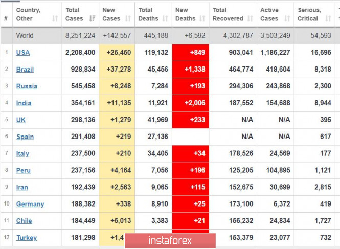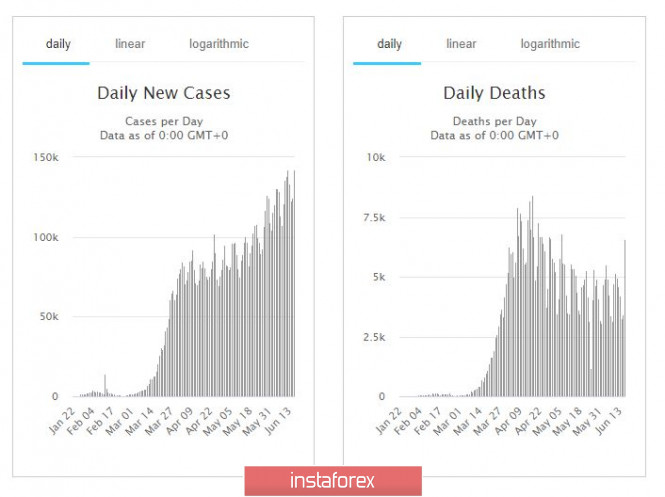 Торговый план 17.06.2020 EURUSD:Covid19; экономика США; оптимизмИнстаФорекс - Instaforex, 5 лет назад График текущей ситуации с пандемией в мире на утро 17 июня. По левой картинке хорошо видно, что вторая волна пандемии еще не завершена - число новых случаев только что показало новый максимум - примерно +140 тысяч случаев. При этом число смертей - резкий рост за сутки примерно + 6 К ( правая картинка) А это картинка текущей ситуации с пандемией на утро 17 июня по странам. Видно, что в США нет спада +25 К новых случаев, число смертей снова выросло почти до +1000 за сутки. По факту, США перешли к "шведской модели" - экономика запущена, граждане - одни придерживаются карантинных ограничений. другие - нет, и постепенно нация набирает коллективный иммунитет. Однако это может себе позволить только страна с огромными ресурсами и сильной медициной. В Бразилии - тяжелая ситуация +37 К новых случаев и +1300 смертей за сутки. Очень беспокоит Индия - рост новых случаев и рост смертей до +2000 Мировая экономика тем временем быстро восстанавливается - за счет США и Европы. S&P500 дневка: Рынок США резко вырос второй день подряд +2% - на сильнейшем отчете по розничным продажам за май. Рост продаж +17.7% - это отыграло не менее половины падения апреля. Массированная помощь людям и бизнесу от властей США и ФРС сделала своё дело - спрос восстанавливается. следом за ним в июне-июле вырастет производство и занятость. EURUSD: Евро определяется с направлением. Попытки роста были сорваны три раза подряд, исходя из этого логично сделать попытку прорыва вниз. Продаем от 1.1210 стоп 1.1255 цель 1.1000 Покупка от 1.1355 стоп 1.1310 цель 1.1500 Материал предоставлен компанией InstaForex - www.instaforex.com |