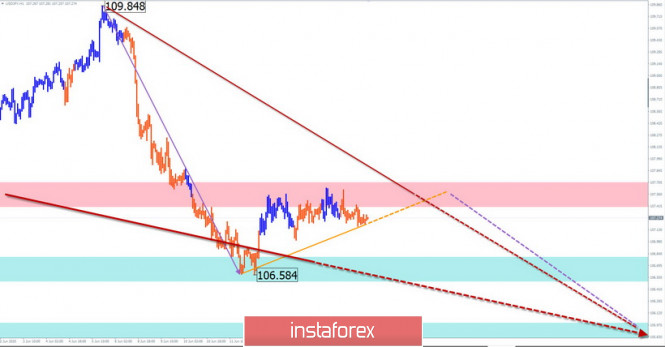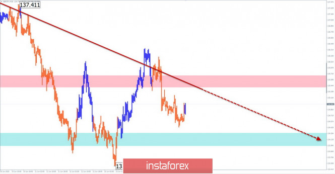 Упрощенный волновой анализ и прогноз EUR/USD, USD/JPY, GBP/JPY на 17 июняИнстаФорекс - Instaforex, 5 лет назад EUR/USD Анализ: На графике евро с марта формируется восходящая волна. В ее структуре с 7 мая развивается заключительная часть (С). Последние 2 недели цена дрейфует вбок вдоль сильного сопротивления крупного ТФ, образуя коррекцию. Прогноз: Сегодня ожидается движение цены преимущественно в боковой плоскости. На европейской сессии можно ждать ход цены вниз, с давлением на зону поддержки. К концу суток повышается вероятность смены курса и ценового отскока вверх. Зоны потенциального разворота Сопротивление: - 1.1310/1.1340 Поддержка: - 1.1230/1.1200 Рекомендации: Торговля на рынке евро сегодня возможна лишь при внутридневном стиле торговли, сниженным лотом. Безопасней всего дождаться завершения текущего снижения и после сигналов разворота войти в длинные позиции. USD/JPY Анализ: Направление краткосрочного тренда японской иены задает алгоритм нисходящей волны от 20 марта. Волна коррекционная, в виде сдвигающейся плоскости. С 5 июня стартовал ее последний участок. В его рамках в последние дни вбок формируется промежуточная коррекция. Прогноз: Большую часть текущего дня ожидается флетовый настрой движения. В конце суток повышается вероятность разворота и начало активного снижения. В случае прорыва зоны ближайшей поддержки целью снижения станет следующий уровень. Зоны потенциального разворота Сопротивление: - 107.40/107.70 Поддержка: - 106.80/106.50 - 106.00/105.70 Рекомендации: Для покупок пары сегодня условия не созданы. В районе расчетного сопротивления рекомендуется отслеживать сигналы разворота, для входа в короткие позиции по этому инструменту. GBP/JPY Анализ: Колебания ценового графика кросса с конца марта образует нисходящую сдвигающуюся коррекцию крупного масштаба. С 5 июня стартовала ее заключительная часть. Прошедшие 6 дней цена формирует промежуточную коррекцию. Прогноз: Сегодня можно ждать движение цены в боковом коридоре между ближайшими встречный зонами. В первой половине дня вероятен подъем в район сопротивления. К концу суток повышается шанс смены курса и снижения цены. Зоны потенциального разворота Сопротивление: - 135.40/135.70 Поддержка: - 134.30/134.00 Рекомендации: Торговля на рынке кроссы сегодня может быть рискованной. Возможны кратковременные сделки в рамках внутрисессионного стиля торговли. В приоритете продажи. Пояснения: В упрощенном волновом анализе (УВА) волны состоят из 3 частей (А-В-С). Анализируется последняя незавершенная волна. Сплошным фоном стрелок показана сформированная структура, пунктирным - ожидаемые движения. Внимание: Волновой алгоритм не учитывает продолжительность движений инструмента по времени! Материал предоставлен компанией InstaForex - www.instaforex.com |