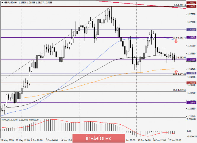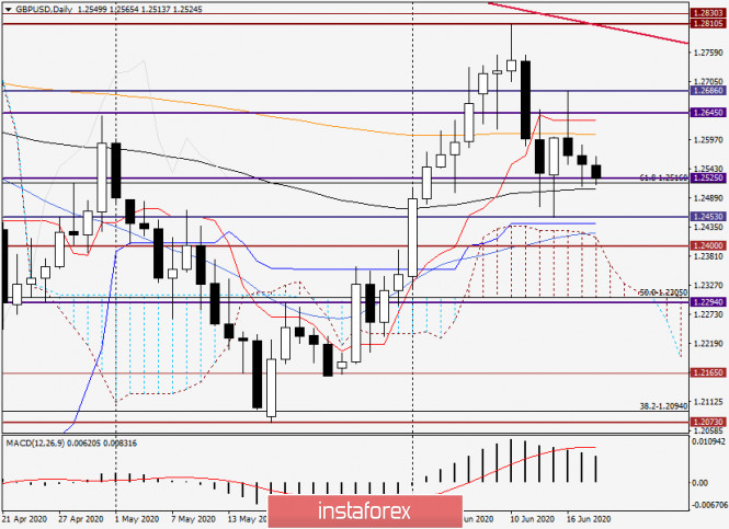 Анализ и прогноз по GBP/USD на 18 июня 2020 годаИнстаФорекс - Instaforex, 5 лет назад Доброго времени суток, уважаемые трейдеры! Главным событием для валютной пары GBP/USD станет сегодняшнее решение Банка Англии по процентной ставке. Как ожидает большинство экспертов, ставка останется на уровне 0.10%, а вот объём скупки активов, в рамках программы количественного смягчения, может увеличиться до 200 млрд фунтов стерлингов. При этом намёки на введение отрицательной процентной ставки или сам факт таковой могут оказать существенное давление на британскую валюту. Такой сценарий представляется маловероятным, но полностью исключать его всё же не стоит. В отношении выхода Великобритании из состава Евросоюза могут начаться значительные подвижки. Британский премьер Борис Джонсон предполагает, что договорённость имеет шансы быть достигнутой уже в июле. В то же время немецкое руководство предполагает достижение соглашения о Brexit в сентябре. Отмечу, что и в одном и в другом случае это значительно раньше 31 декабря 2020 года. То есть той даты, до которой вопрос по Brexit должен быть урегулирован. Как бы там ни было, вопрос выхода Великобритании из Европейского Союза весьма непрост. Это прекрасно все понимают. Нужно урегулировать некоторые вопросы, например, проблему рыболовства. Если подвести черту под фундаментальной частью обзора, то сегодня в 15:30 (мск) будут опубликованы первичные обращения за пособием по безработице в США, которые могут повлиять на рыночные настроения и динамику валютной пары GBP/USD. А на данный момент картина следующая. Daily Вчера пара торговалась разнонаправленно. После первоначального роста и достижения уровня 1.2587 котировка упала к 1.2510, откуда смогла скорректироваться, и торги среды завершились на 1.2551. Быки по фунту так и не смогли поднять курс выше 1.2600 и закрепиться над этим уровнем. Считаю, что это для них большой минус, и теперь нисходящие перспективы фунта просматриваются более очевидно. Именно это и наблюдается в данный момент. Пара находится под давлением и торгуется вблизи 1.2520. Сразу хотелось бы отметить, что это очень сильная и значимая для рынка техническая зона. Если сегодняшняя сессия закроется под уровнем 1.2500, последующее давление на британскую валюту только усилится. Характерно, что прямо над 1.2500 находится 89 экспоненциальная скользящая средняя, которая уже неоднократно поддерживала цену и не давала себя пробить. Восходящий сценарий по-прежнему будет актуальным только в случае поочерёдного пробоя 200 ЕМА и линии Тенкан индикатора Ишимоку. Естественно, что после этого быкам по фунту предстоит ещё многое сделать, чтобы держать рынок по gbp/usd под своим контролем, но для начала необходимо вернуть торги выше обозначенных индикаторов. Н4 Глядя на череду свечей дожи с длинными тенями, можно прийти к выводу, что рынок ожидает какого-то драйвера и пока не может решиться выбрать направление. Вполне возможно, что таким драйвером станет решение Банка Англии по ставкам, которое будет оглашено в 14:00 (мск). В это же время будут опубликованы протоколы банка и объём программы скупки активов. Допускаю, что после публикации этих релизов возможны резкие разнонаправленные движения. Как вариант, продажи можно пробовать после кратковременного залёта цены к 1.2630/40, а покупки после столь же кратковременных падений в район 1.2460/50. Кто не желает рисковать