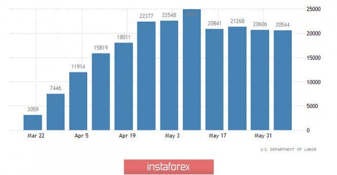 Горящий прогноз по GBP/USD на 19.06.2020 и торговая рекомендацияИнстаФорекс - Instaforex, 5 лет назад Все оказалось даже хуже, нежели можно было себе предположить. Да, Банк Англии, вполне себе буднично расширил программу количественного смягчения и намекнул на возможность снижения ставки рефинансирования. Но сделал он это столь ужасающим способом, что лучше бы просто заявил о том, что до конца года ставка рефинансирования будет снижена до нулевой отметки. Вместо этого Банк Англии решил напомнить всем про удивительные странности с уровнем безработицы, невероятная стабильность которого противоречит и макроэкономической динамике, и другим показателям состояния рынка труда. Регулятор решил закрыть вызванные этим несоответствием вопросы, заверив всех в том, что это всего лишь временная статистическая аномалия и в скором времени мы увидим существенный рост уровня безработицы. Но и этого Банку Англии оказалось мало, так что он еще решил добавить, что восстановление рынка труда будет крайне трудным и долгим. А значит, и восстановление экономики окажется довольно затяжным. Что можно воспринимать как намек на то, что ставку рефинансирования вполне могут снизить и до отрицательных значений. Так что неудивительно, что фунт пошел вниз несколько активнее, нежели ожидалось. Но не стоит думать, что только в Великобритании существуют такие проблемы. Если в Соединенном Королевстве только готовятся ко всему этому, то в Соединенных Штатах уже прямо сейчас наслаждаются медленным и унылым восстановлением рынка труда. Это прекрасно демонстрирует динамика заявок на пособия по безработице. Так, число первичных заявок на пособия по безработице уменьшилось с 1 566 тыс. до 1 508 тыс. Прогнозировалось сокращение до 1 150 тыс. Число же повторных заявок сократилось с 20 606 тыс. до 20 544 тыс. Ожидалось уменьшение до 20 000 тыс. Иными словами, общее число заявок осталось примерно таким же, и, учитывая, что значения невероятно большие и в несколько раз превосходят нормальные и привычные, можно даже сказать, что речь идет не то что о медленном восстановлении или стабилизации, а о постепенном ухудшении ситуации. Но к подобному все уже привыкли, так что это никак не повлияло на настроения инвесторов. Ведь если в Соединенных Штатах это уже происходит и можно измерить и оценить масштабы этого увлекательного процесса, то вот что именно будет происходить в Великобритании, пока непонятно. А неопределенность пугает больше всего. Число повторных заявок на пособия по безработице (Соединенные Штаты): Сегодня же в Великобритании публикуются данные по розничным продажам, которые могут хоть немного помочь фунту. Ведь темпы спада розничных продаж должны замедлиться с -22,6% до -18,0%. Да, значения просто ужасающие, но вот динамика пусть и с натяжкой, но все же положительная. На фоне итогов заседания правления Банка Англии фунт нуждается хоть в каком-то намеке на оптимизм и светлое будущее. Розничные продажи (Великобритания): В плане технического анализа мы видим инерционное движение, вызванных информационно-новостным фоном, в ходе чего котировке удалось преодолеть переменный уровень 1,2500 и спуститься вплоть до отметки 1,2401, где котировка замедлила движение, образуя застой в рамках 1,2401/1,2443. Фактически котировка продолжила процесс восстановления относительно более раннего восходящего хода, где вы