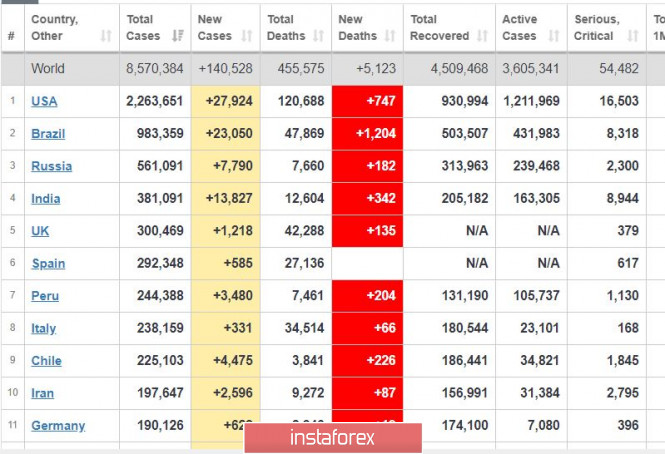 Торговый план 19.06.2020. EURUSD. Рынок США. Covid19ИнстаФорекс - Instaforex, 5 лет назад Сovid19 в мире: Опасный рост в Индии. Очень тяжелая ситуация в Бразилии. В США идет постепенное нарабатывание коллективного иммунитета - фактически США свернули на "шведский путь" - меры карантина не соблюдаются. Такая же ситуация по факту и в России - в Москве резкое улучшение, Петербург отползает постепенно от максимума - официально снижение числа болеющих на 1000 от максимума - но вчера губернатор Петербурга заявил, что в городе исчерпан фонд коечных мест для больных - больницы переполнены - хотя, повторяю, официально больных стало меньше на 1000 за три последних дня. Мировые рынки на перепутье: рынок США - видно, что (график S&P500) рост на запуске экономики после карантина выдохся. Падения пока нет, но оно возможно. Начинаем постепенно продавать, стопы за максимумами мая-июня. EURUSD: Пока не определился с направлением. Мы пока держим продажи от 1.1205, стоп 1.1250. Но мы готовы купить от 1.1265. Материал предоставлен компанией InstaForex - www.instaforex.com |