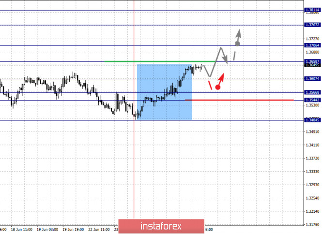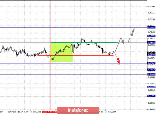 По паре Канадский доллар/Доллар ключевыми уровнями в масштабе Н1 являются: 1.3811, 1.3767, 1.3706, 1.3658, 1.3607, 1.3566, 1.3544 и 1.3484. Здесь цена формирует потенциал для верха от 23 июня. Продолжения движения кверху ожидаем после пробоя 1.3658, в данном случае цель – 1.3706, возле этого уровня консолидация. Пробой 1.3706 приведет к выраженному восходящему движению, здесь цель – 1.3767, потенциальным значением для верха считаем уровень 1.3811, по достижении которого ожидаем консолидацию, а также откат книзу. Уход в коррекцию возможен после пробоя 1.3607, в данном случае цель – 1.3566, диапазон 1.3566 – 1.3544 является ключевой поддержкой для верха, его проход ценой приведет к развитию нисходящей структуры, в данном случае потенциальная цель – 1.3484. Основная тенденция – формирование восходящего потенциала от 23 июня Торговые рекомендации: Buy: 1.3658 Take profit: 1.3704 Buy: 1.3708 Take profit: 1.3765 Sell: 1.3605 Take profit: 1.3567 Sell: 1.3544 Take profit: 1.3486 По паре Австралийский доллар/Доллар ключевыми уровнями в масштабе Н1 являются: 0.7052, 0.6990, 0.6941, 0.6849, 0.6789, 0.6741, 0.6705. 0.6613 и 0.6549. Здесь мы следим за локальной восходящей структурой от 19 июня. В коридоре 0.6941 – 0.6990 ожидаем краткосрочное восходящее движение, пробой уровня 0.6990 приведет к отмене нисходящей тенденции, в данном случае первая цель – 0.7052. Возобновление развития нисходящей тенденции возможно после пробоя 0.6849, здесь первая цель – 0.6789, пробой которой, в свою очередь, позволит рассчитывать на движение к 0.6741. Проход ценой шумового диапазона 0.6741 – 0.6705 приведет к выраженному нисходящему движению, здесь цель – 0.6613. Потенциальным значением для нисходящей тенденции считаем уровень 0.6549 по достижении которого ожидаем откат кверху. Основная тенденция – локальная восходящая структура от 19 июня Торговые рекомендации: Buy: 0.6941 Take profit: 0.6988 Buy: 0.6992 Take profit: 0.7050 Sell: 0.6849 Take profit: 0.6790 Sell: 0.6787 Take profit: 0.6741 По паре Евро/Иена ключевыми уровнями в масштабе Н1 являются: 122.40, 121.93, 121.57, 121.08, 120.28, 119.94 и 119.29. Здесь цена формирует выраженные начальные условия для верха от 22 июня. Продолжения движения кверху ожидаем после пробоя 121.08, в данном случае цель – 121.57, в коридоре 121.57 – 121.93 краткосрочное восходящее движение, а также консолидация. Потенциальным значением для верха считаем уровень 122.40, по достижении которого ожидаем откат книзу. Краткосрочное нисходящее движение возможно в коридоре 120.28 – 119.94, пробой последнего значения будет располагать к развитию нисходящей тенденции, в данном случае цель – 119.29, возле этого уровня консолидация. Основная тенденция – формирование начальных условий для верха от 22 июня Торговые рекомендации: Buy: 121.08 Take profit: 121.57 Buy: 121.59 Take profit: 121.91 Sell: 120.28 Take profit: 119.95 Sell: 119.92 Take profit: 119.31 По паре Фунт/Иена ключевыми уровнями в масштабе Н1 являются: 136.35, 135.65, 135.15, 134.40, 133.86, 133.15, 132.69, 132.17 и 131.71. Здесь цена формирует потенциал для верха от 22 июня. Краткосрочное восходящее движение ожидаем в коридоре 133.86 – 134.40, пробой последнего значения приведет к выраженному восходящему движению, здесь цель – 135.15, в коридоре 135.15 – 135.65 консолидация. Потенциальным значением для верха считаем уровень 136.35, по достижении этого уровня ожидаем откат книзу. Консолидированное движение, возможно в диапазоне 133.15 – 132.69, пробой последнего значения приведет к углубленной коррекции, здесь цель 132.17, этот уровень является ключевой поддержкой для верха. Основная тенденция – формирование начальных условий для восходящего цикла от 22 ию