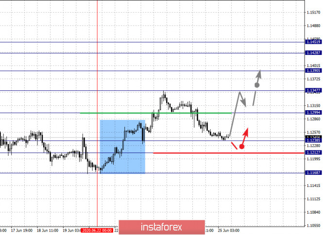 Фрактальный анализ по основным валютным парам на 25 июняИнстаФорекс - Instaforex, 5 лет назад Здравствуйте, уважаемые коллеги. По паре Евро/Доллар цена близка к отмене восходящей структуры от 22 июня, уровень 1.1212 ключевая поддержка для верха. По паре Фунт/Доллар цена близка к отмене восходящей структуры от 22 июня, для чего необходим проход шумового диапазона 1.2419 – 1.2388. По паре Доллар/Франк цена близка к отмене нисходящей структуры от 22 июня, для чего необходим проход шумового диапазона 0.9488 – 0.9502. По паре Доллар/Иена цена отменила развитие нисходящего потенциала и здесь мы следим за формированием начальных условий для верха от 23 июня. По паре Евро/Иена продолжаем следить за локальной структурой от 16 июня, уровень 120.22 ключевая поддержка. По паре Фунт/Иена цена формирует начальные условия для верха от 22 июня, уровень 134.40 ключевое сопротивление, уровень 132.17 ключевая поддержка. Прогноз на 25 июня: Аналитический обзор валютных пар в масштабе Н1: