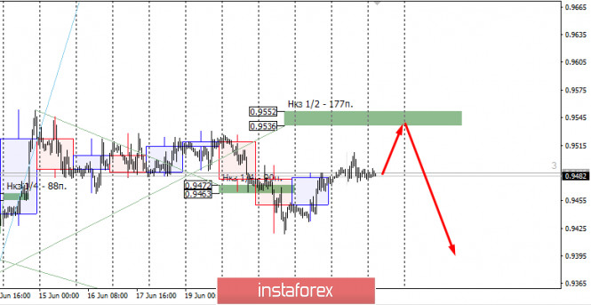 Контрольные зоны USDCHF 26/06/20ИнстаФорекс - Instaforex, 5 лет назад Сегодня пара торгуется в середине среднесрочного флетового диапазона. Это не дает возможности войти в позиции по выгодным ценам. Хорошими ценами для продажи инструмента находятся на максимуме текущей недели, который совпадает с НКЗ 1/2 0.9552-0.9536. Тест этой зоны будет определяющим для нисходящего движения. Для продолжения формирования нисходящей модели уже все готово, поэтому необходимо рассматривать образование возможных паттернов с текущих уровней. Для перестроения инструмента на бычий импульс требуется закрытие сегодняшних торгов выше НКЗ 1/2. Это даст возможность для покупки инструмента в начале следующей недели. Вероятность реализации данного разворота пока составляет 25%, что делает эту модель вспомогательной. Дневная КЗ - дневная контрольная зона. Зона, образованная важными данными с фьючерсного рынка, которые изменяются несколько раз в год. Недельная КЗ - недельная контрольная зона. Зона, образованая важными отметками фьючерсного рынка, которые изменяются несколько раз в год. Месячная КЗ - месячная контрольная зона. Зона, которая является отражением средней волатильности за последний год. Материал предоставлен компанией InstaForex - www.instaforex.com |