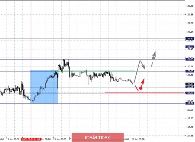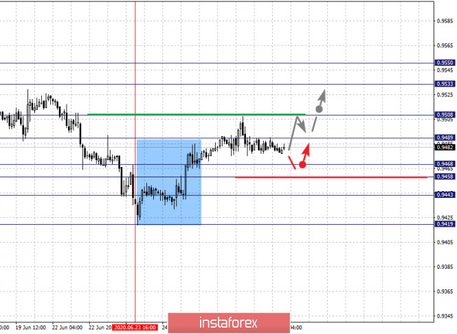 Фрактальный анализ по основным валютным парам на 26 июняИнстаФорекс - Instaforex, 5 лет назад Здравствуйте, уважаемые коллеги. По паре Евро/Доллар следим за формированием нисходящей структуры от 23 июня, уровень 1.1183 ключевое сопротивление. По паре Фунт/Доллар цена близка к отмене восходящей структуры от 22 июня, для чего необходим проход шумового диапазона 1.2399 – 1.2375. По паре Доллар/Франк следим за формированием начальных условий для верха от 23 июня, уровень 0.9508 ключевое сопротивление. По паре Доллар/Иена продолжения развития восходящей тенденции от 23 июня ожидаем после прохода ценой шумового диапазона 107.23 – 107.37. По паре Евро/Иена диапазон 119.91 – 119.67 является ключевой поддержкой для верха от 22 июня. По паре Фунт/Иена цена формирует начальные условия для верха от 22 июня, уровень 133.78 ключевое сопротивление, уровень 132.19 ключевая поддержка. Прогноз на 26 июня: Аналитический обзор валютных пар в масштабе Н1: По паре Евро/Доллар ключевыми уровнями в масштабе Н1 являются: 1.1289, 1.1254, 1.1232, 1.1183, 1.1154, 1.1132, 1.1071 и 1.1029. Здесь мы следим за формированием нисходящей структуры от 23 июня. Продолжения движения книзу ожидаем после пробоя 1.1183, в данном случае цель – 1.1154. Проход ценой шумового диапазона 1.1154 – 1.1132 приведет к развитию выраженного нисходящего движения, здесь цель – 1.1071. Потенциальным значением для низа считаем уровень 1.1029, по достижении которого ожидаем откат кверху. Краткосрочное восходящее движение возможно в коридоре 1.1232 – 1.1254, пробой последнего значения приведет к углубленной коррекции, здесь цель – 1.1289, этот уровень является ключевой поддержкой для нисходящей структуры от 23 июня. Основная тенденция – формирование нисходящей структуры от 23 июня Торговые рекомендации: Buy: 1.1232 Take profit: 1.1252 Buy: 1.1255 Take profit: 1.1287 Sell: 1.1183 Take profit: 1.1155 Sell: 1.1130 Take profit: 1.1080 По паре Фунт/Доллар ключевыми уровнями в масштабе Н1 являются: 1.2682, 1.2635. 1.2548. 1.2518, 1.2468, 1.2399, 1.2375 и 1.2332. Здесь цена близка к отмене восходящей структуры от 22 июня, для чего необходим проход шумового диапазона 1.2399 – 1.2375, в данном случае потенциальная цель - 1.2332. Возобновления движения кверху ожидаем после пробоя 1.2468, в данном случае цель - 1.2518, проход ценой шумового диапазона 1.2518 – 1.2548 приведет к развитию выраженного восходящего движения, здесь цель – 1.2635. Потенциальным значением для верха считаем уровень 1.2682, по достижении которого ожидаем консолидацию, а также откат книзу. Основная тенденция – формирование начальных условий для верха от 22 июня, стадия глубокой коррекции Торговые рекомендации: Buy: 1.2468 Take profit: 1.2518 Buy: 1.2548 Take profit: 1.2635 Sell: 1.2375 Take profit: 1.2334 Sell: Take profit: По паре Доллар/Франк ключевыми уровнями в масштабе Н1 являются: 0.9550, 0.9533, 0.9508, 0.9489, 0.9468, 0.9458 и 0.9443. Здесь мы следим за формированием начальных условий для верха от 23 июня. Краткосрочное восходящее движение ожидаем в диапазоне 0.9489 – 0.9508, пробой последнего значения приведет к выраженному восходящему движению, здесь цель – 0.9533. Потенциальным значением для верха считаем уровень 0.9550, по достижении которого ожидаем консолидацию, а также откат книзу. Краткосрочное нисходящее движение возможно в коридоре 0.9468 – 0.9458, пробой последнего значения приведет к углубленной коррекции, в данном случае цель – 0.9443, этот уровень является ключевой поддержкой для верха. Основная тенденция – формирование начальных условий для верха от 23 июня Торговые рекомендации: Buy: 0.9490 Take profit: 0.9