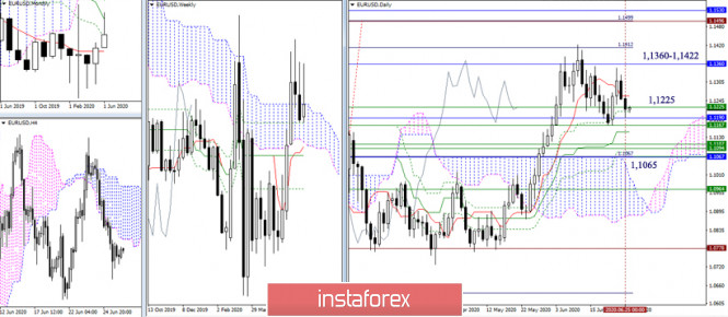 EUR/USD и GBP/USD 26 июня – рекомендации технического анализаИнстаФорекс - Instaforex, 5 лет назад EUR/USD и GBP/USD 26 июня – рекомендации технического анализа EUR/USD Очередная неделя близится к завершению. В начале недели при анализе последнего отчета СОТ (Commitments of Traders от 16.06.20.) отмечалось, что наступило время пересмотра действующей тенденции. Дневной крест сейчас занял горизонтальное положение, сказывается остановка в направленном движении. Игроки на понижение стремятся усилить свои позиции и продолжить нисходящую коррекцию. Но реализации этих планов мешает широкая и значимая зона поддержек, в расположении которой до сих пор ничего пока не изменилось – 1,1225 (недельный Сенкоу Спан Б) – 1,1190 (месячный Фибо Киджун) – 1,1167 (недельный Фибо Киджун) – 1,1147 (дневной Киджун) – 1,1108 (недельный Сенкоу Спан А) – 1,1065 (недельный крест + месячный Тенкан + дневное облако). Игроки на понижение вчера сумели закрепиться под недельной долгосрочной тенденцией, поэтому на младших временных интервалах в настоящий момент они сохраняют преимущество. Тем не менее пара вновь находится в длительной коррекции и при этом остаётся в зоне влияния и притяжения ключевых уровней, которые сегодня объединяют свои усилия в пределах 1,1223-49 (центральный Пивот-уровень + недельная долгосрочная тенденция). Выход из зоны коррекции вернёт актуальность поддержкам классических Пивот-уровней 1,1185 – 1,1154 – 1,1116. Закрепление выше 1,1223-49 изменит баланс сил младших таймов. Повышательными ориентирами внутри дня станут сопротивления 1,1292 (R2) – 1,1323 (R3). GBP/USD Прошлые сутки прошли в раздумьях. Никто из участников рынка не смог добиться результата, поэтому озвученные ранее перспективы сохраняются. Для игроков на понижение важно преодолеть зону поддержек, расположенную сейчас в районе 1,2349 – 1,2317 (недельный Киджун + месячный Фибо Киджун). Это позволит рассмотреть возможности по ликвидации золотых крестов Ишимоку на днях и неделях. Для игроков на повышение желательно сохранить действующие поддержки золотых крестов (1,2410 дневной Фибо Киджун + 1,2349 недельный Киджун) и опираясь на них попробовать восстановить свои позиции до такого состояния, когда появится шанс покинуть зону действующей коррекции. Основные ориентиры на этом пути в сложившейся ситуации расположены на 1,2440 – 1,2510 (недельный Тенкан + месячный Тенкан + дневной крест) – 1,2569-95 (недельный Фибо Киджун + месячный Киджун) – 1,2735-1,2812 (нижняя граница недельного облака + максимальный экстремум). На младших временных интервалах игроки на понижение закрепились и удерживают позиции под ключевыми уровнями, сегодня их можно отметить на 1,2422-39 (недельная долгосрочная тенденция + центральный Пивот-уровень), но выйти за пределы зоны притяжения данных уровней пока не удаётся. Обновление вчерашнего минимума (1,2388) продолжит нисходящий тренд. Поддержки классических Пивот-уровней расположены сейчас на 1,2381 – 1,2346 – 1,2305. Закрепление выше 1,2422-39 может повлиять на действующий баланс сил на Н1, при этом дальнейшее усиление бычьих настроений можно будет ожидать лишь после надёжного преодоления максимальных экстремумов, ближайшие из них расположены на 1,2464 и 1,2542. Ichimoku Kinko Hyo (9.26.52), Pivot Points (классические), Moving Avarage (120) Материал предоставлен компанией InstaForex - www.instaforex.com |