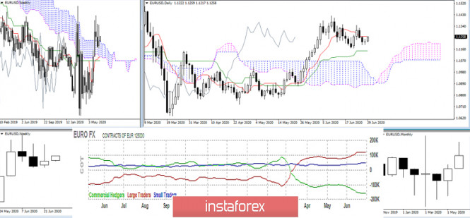 Последний отчет СОТ (Commitments of Traders). Недельные перспективы для EUR/USDИнстаФорекс - Instaforex, 5 лет назад Последний отчет СОТ (Commitments of Traders). Недельные перспективы для EUR/USD Ситуация немного стабилизировалась. Последний отчет СОТ (Commitments of Traders от 23.06.20) вновь показал увеличение открытого интереса к евро (585,421 против 574,939). После фиксации определённой части прибыли и некоторых раздумий глобальные игроки вновь строят планы и наращивают позиции. В статистике общего отчета обращает на себя внимание непропорциональное увеличение позиций short группой Commercials. Игроки, владеющие информацией о реальном положении дел в экономике, почти в четыре раза активнее увеличивали медвежьи позиции. Тенденция в предпочтениях у данной группы игроков не меняется уже длительное время, несмотря на некоторые разные приёмы в поведении. Для хеджеров по евро сохраняется приоритет и доминирование медвежьих интересов. Поэтому в долгосрочной перспективе, а отчеты СОТ позволяют делать выводы именно о долгоиграющих планах, пересмотра и изменение тенденции на таких таймфреймах, как неделя и месяц пока не ожидается. В финансовом отчете ключевой показатель распределения сил крупнейших дилеров (Dealer Intermediary) сохраняет перевес сил в пользу длинных позиций по евро, но он уже не является пиковым значением и с прошлого раза начал менять свою структуру. Данные обстоятельства сдерживают доверие к процентному соотношению позиций (58,9–4,7) и требуют дополнительного подтверждения. Основной вывод Активность и результативность игроков на повышение, позволившая достичь неплохих результатов на дневном тайме, наметить возможности на недельном и исполнить восходящую коррекцию на месячном временном интервале, остановлена, её дальнейшие перспективы туманны, если не сказать больше – пока отсутствуют. Техническая картина Обозначенные выводы, находят некоторые созвучия в техническом анализе ситуации. Нисходящие коррекции дневного и недельного таймфрейма не получили развития на прошлой рабочей неделе и приобретают форму консолидации. На этой неделе мы закрываем месяц. Следующий отчет СОТ будет как раз содержать информацию об итоговых выводах и решениях за июнь месяц. Пара EUR/USD протестировала в июне месячный среднесрочный тренд (1,1360), в результате форма месячной свечи будет иметь важное значение, особо показательный в данном случае – размер верхней тени. На младших временных интервалах тем временем пара ведёт борьбу за ключевые рубежи Н1, которые сегодня объединяют свои усилия на 1,1217-54 (центральный Пивот-уровень дня + недельная долгосрочная тенденция). Анализируемые технические индикаторы готовы поддерживать дальнейшее усиление бычьих позиций, но основной перевес сил на Н1 пока сохраняется на стороне игроков на понижение. Сопротивления внутри дня можно отметить 1,1261 и 1,1283, поддержки классических Пивот-уровней расположены сегодня на 1,1217 – 1,1195 – 1,1173 – 1,1151. Ichimoku Kinko Hyo (9.26.52), Pivot Points (классические), Moving Avarage (120) Материал предоставлен компанией InstaForex - www.instaforex.com |