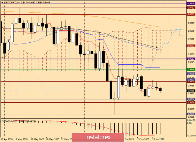 Технический анализ и рекомендации по USD/CHF на 29 июня 2020 годаИнстаФорекс - Instaforex, 5 лет назад Доброго времени суток! Ещё одной основной валютной парой, которую хотелось бы сегодня рассмотреть, станет доллар/франк. С учётом завершившихся в пятницу недельных торгов, начнём с соответствующего таймфрейма. Weekly Как видим, по итогам торгов 22-26 июня валютная пара USD/CHF снизилась и закрыла прошлую неделю на 0.9476. Здесь сразу необходимо отметить, что неделя завершилась под знаковым техническим и психологическим уровнем 0.9500. Казалось бы, данный факт может свидетельствовать о продолжении нисходящего сценария по usd/chf, однако длинная нижняя тень последней свечи не даёт в этом полной уверенности. Торги текущей пятидневки котировка начала с умеренного ослабления, тем не менее основные события для инвесторов ещё впереди, поэтому рассмотрим оба варианта развития событий. Восходящий сценарий подразумевает возвращение цены выше 0.9500 и перепись последних максимумов на 0.9525. При таком раскладе следующими целями для быков по usd/chf станет ценовая зона 0.9542-0.9546. Здесь находится линия Киджун индикатора Ишимоку и отмечены максимальные значения торгов позапрошлой недели. Полагаю, что только истинный пробой 0.9546 и закрытие текущих недельных торгов выше этой отметки обозначит приоритет для дальнейшего роста пары. Игрокам на понижение курса необходимо пробивать поддержку на 0.9420 (последние минимумы), после чего откроется дорога к следующему уровню поддержки на 0.9375. На мой взгляд, только пробой этой отметки с закрытием недельных торгов под ней, обозначит медвежий рынок по доллар/франку. Daily Последние две свечи разновидности дожи, с маленькими телами и более длинными тенями, указывают на трудности быков по данному инструменту с дальнейшим продвижением котировки в северном направлении. Это означает, что велика вероятность снижения курса. На данный момент именно это и происходит. В случае продолжения ослабления usd/chf, целями внизу станут 0.9432 и 0.9420, а пробой последней отметки ещё больше усилит медвежьи настроения по данному инструменту и отправит пару в район 0.9400-0.9375. Бычий сценарий приобретёт свою актуальность в случае поочерёдного пробоя уровней: 0.9500, 0.9507, 0.9530 и 0.9546. Но и это ещё не всё. Далее игрокам на повышение курса придётся проходить линию Киджун, которая располагается на 0.9555, и закрепляться над ней. Н4 На четырёхчасовом таймфрейме пара usd/chf торгуется под используемыми скользящими средними: 50 МА, 89 ЕМА и 200 ЕМА. Хотел бы обратить внимание, что в случае подъёма к каждому из обозначенных мувингов, котировка может встретить сильное сопротивление и развернуться на снижение. Если так и произойдёт, ближайшие ориентиры для открытия коротких позиций по данной валютной паре рекомендую искать в районе 0.9483-0.9503. Во-первых, здесь располагаются 50 МА и 89 ЕМА, соответственно. Во-вторых, не стоит забывать и о важном психологическом уровне 0.9500, который в состоянии оказать существенное влияние на котировку. Таким образом, на данный момент основной торговой идеей считаю продажи из выделенной ценовой зоны. Подтверждающим сигналом для открытия коротких позиций по USD/CHF станет появление в выделенной зоне медвежьих свечных сигналов на 4-часовом и (или) часовом графиках. Успехов! Материал предоставлен компанией InstaForex - www.instaforex.com |