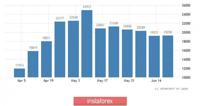 Горящий прогноз по GBP/USD на 03.07.2020 и торговая рекомендацияИнстаФорекс - Instaforex, 5 лет назад Как и предсказывалось, публикация доклада Министерства труда Соединенных Штатов запустила процесс коррекции. Однако, ожидалось гораздо более масштабное снижение фунта. Все дело в том, что по существу, данные по рынку труда в целом, оказались немного хуже прогнозов. Да, динамика носит ярко выраженный позитивный характер, но ряд данных говорят о том, что эта тенденция пока не является устойчивой. Итак, если говорить о содержании доклада Министерства труда Соединенных Штатов, то оно вызывает лишь радость и восторг. Уровень безработицы сократился с 13,3% до 11,1%, тогда как прогнозировалось снижение до 12,3%. Но что гораздо важнее, так это число рабочих мест вне сельского хозяйства, которое возросло не на 2 900 тыс., а на 4 800 тыс. И мало того, что это рекордный рост числа рабочих мест, так еще и предыдущее значение пересмотрели в лучшую сторону. В мае, число рабочих мест возросло не на 2 509 тыс., а на 2 699 тыс. Уровень экономической активности увеличился с 60,8% до 61,5%, хотя ждали роста лишь до 61,0%. Так что можно уверенно сказать, что американский рынок труда явно подает признаки восстановления, что является исключительно позитивным фактором. Однако, от более масштабного укрепления, доллар сдержали данные по заявкам на пособия по безработице. И это при том, что число первичных заявок на пособия по безработице уменьшилось с 1 482 тыс. до 1 427 тыс. Число повторных заявок возросло с 19 231 тыс. до 19 290 тыс. Рост конечно незначительный, но во-первых, ждали снижения, а во-вторых, общее число заявок продолжает оставаться невероятно огромным. И как раз это указывает на то, что восстановление рынка труда будет долгим и трудным. А значит существует вероятность внезапного ухудшения ситуации. И именно это ограничило потенциал укрепления доллара. Вместе с тем, оптимистичные настроения явно преобладают. Число повторных заявок на пособия по безработице (Соединенные Штаты): Сегодня же в Соединенных Штатах выходной день, по случаю празднования Дня Независимости. Сам праздник будет завтра, но из-за того что он выпал на субботу, пятницу сделали выходным днем. В отсутствии же американских трейдеров, на рынке обычно ничего не происходит. Ну или почти ничего. Так что хоть какая-то активность, если она и будет, произойдет лишь во время европейской сессии. Тем более, что в Великобритании сегодня публикуются итоговые данные по индексам деловой активности. Учитывая, что итоговые данные по индексу деловой активности в производственной сфере полностью совпали с предварительной оценкой, скорее всего, ровно того же стоит ждать от индекса деловой активности в сфере услуг, и составного индекса деловой активности. Так, в сфере услуг индекс должен вырасти с 29,0 до 47,0. Составной же индекс деловой активности может подрасти с 30,0 до 47,6. И по идее, это фактор роста. Однако, все эти данные уже заложены в стоимость фунта, и произошло это во время публикации предварительной оценки. И еще, стоит обратить внимание на то, что публикация итогового индекса деловой активности в производственной сфере сопровождалось локальным ослаблением фунта. Кроме того, данные по заявкам на пособия по безработице конечно вчера ограничили рост доллара, но в целом, ситуация на рынке труда Соединенных Штатов явно улучшается. И именно эта м