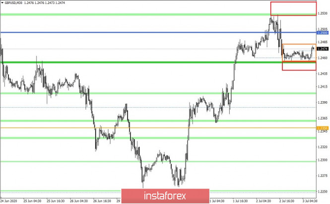 Торговые рекомендации по валютной паре GBPUSD – перспективы дальнейшего движенияИнстаФорекс - Instaforex, 5 лет назад Со стороны комплексного анализа виден отскок цены от района локального максимума 24 июня, поговорим о деталях. Торговая неделя подходит к концу, и нам пора подвести предварительные итоги. Во-первых, точка опоры в виде переменного уровня 1,2250, относительно которого возник коррекционный ход, и он привел участников рынка в район локального максимума 24 июня [1,2540]. Коррекционное движение оказалось самым масштабным за все время существования нисходящего такта от диапазонного уровня 1,2770, где на мгновение могло показаться, что возник сбой, но котировке так и не удалось зафиксироваться выше чем 1,2550 на четырехчасовом периоде, чтобы подтвердить теорию о нарушении тактовой составляющей. Как результат, котировка получила первые сигналы о возобновлении нисходящего хода от района 1,2500/1,2540, который сыграл роль сопротивления, а также свечной модели «Медвежье поглощение» на четырехчасовом периоде [свечи 08:00 и 12:00 – время по торговому терминалу]. Относительно теории развития рынка мы видим, что высокая спекулятивная активность привела к тому, что на мгновение тактовая составляющая оказалась под ударом изменения направления, хоть многие технические и фундаментальные факторы говорили иначе. На таком спекулятивном ажиотаже тактика локальных операций в очередной раз доказала свою эффективность на рынке, что дает возможность работать практически на любом колебание, не зацикливаясь на иных факторах. Разбирая поминутно прошедший торговый день, можно увидеть, что виток коротких позиций возник с 12:00, именно в тот момент, когда котировка вплотную сблизилась с локальным максимумом предыдущего коррекционного движения. Основные всплески активности возникли уже со стартом американской торговой сессии, что совпадает с потоком новостного фона. Наиболее примечательным моментом стал процесс накопления 1,2455/1,2471, который возник с 19:30 и продлился до конца торгового дня. [Время указано по торговому терминалу] В плане волатильности фиксируется самый низкий показатель за 27 торговых дней – 73 пункта, что на 39% ниже среднесуточного показателя. Замедление активности может быть связано с рядом факторов: процесс накопления, который приведет к новым всплескам цены; фиксация торговых позиций перед выходным днем в Соединенных Штатах, чтобы не попасть под низкие объемы. Как обсуждалось в предыдущем обзоре, трейдеры рассматривали тактику отскока от района 1,2500/1,2540, но рассчитывали на большую прибыль. Восстановительный процесс относительного коррекционного хода еще не настал. Рассматривая торговый график в общем плане (дневной период), видно, что котировка ощущает над собой давление, а это значит, что нисходящий такт от диапазонного уровня 1,2770 все еще может продолжить свое формирование. Новостной фон минувшего дня имел в себе доклад Министерства труда Соединенных Штатов, который отобразил дальнейшее восстановление после апрельского краха. Относительно деталей доклада уровень безработицы уменьшился с 13,3% до 11,1%, при том что прогнозировали снижение до 12,3%. Число рабочих мест вне сельского хозяйства выросло на 4 800 000 при прогнозе роста на 2 509 000, что стало своеобразным рекордом. Реакция рынка на данные Министерства труда была в пользу укрепления американск