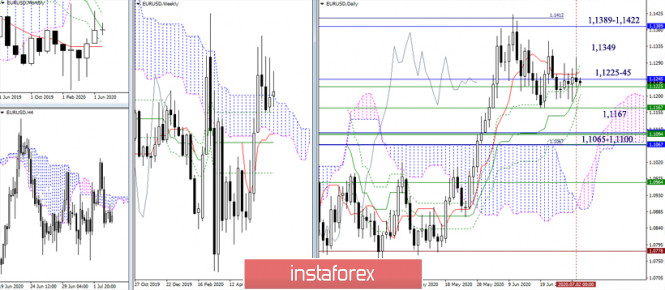 EUR/USD и GBP/USD 3 июля – рекомендации технического анализаИнстаФорекс - Instaforex, 5 лет назад EUR/USD и GBP/USD 3 июля – рекомендации технического анализа EUR/USD Ситуация за последние сутки не претерпела существенных изменений. Пара остаётся в зоне притяжения 1,1245-25 (месячный среднесрочный тренд + недельный долгосрочный тренд + дневной краткосрочный). Сегодня закрываем неделю. В результате вновь будет решаться вопрос о длине верхней тени недельной свечи и способности игроков на понижение вернуться до закрытия в недельное медвежье облако. Основные выводы и ожидания в сложившейся ситуации остаются прежними. Игрокам на повышение для дальнейшего восстановления позиций нужно остаться выше 1,1225-45, следующими ориентирами при этом могут служить 1,1349 (ближайший экстремум) и сопротивления в районе 1,1389 – 1,1422 (месячный Фибо Киджун + максимум коррекции). Игрокам на понижение важно вернуться под 1,1225-45 и ликвидировать дневной золотой крест, далее ориентиры для них расположены на 1,1167 (недельный Фибо Киджун) и в районе 1,1065 – 1,1100. Неопределённость доминирует. На младших временных интервалах участники рынка действуют с переменным успехом, формируя боковое движение с центром притяжения в районе ключевых уровней Н1, которые сегодня объединяют свои усилия в районе 1,1255-39 (центральный Пивот-уровень + недельная долгосрочная тенденция). Работа выше уровней отдаёт предпочтение игрокам на повышение, их ориентирами внутри дня являются сопротивления классических Пивот-уровней 1,1287 – 1,1335 – 1,1367. Работа ниже уровней 1,1255-39 передаёт инициативу и преимущества игрокам на понижение. Понижательные ориентиры внутри дня сегодня расположены на 1,1207 – 1,1175 – 1,1127. GBP/USD Пара протестировала вчера ближайшие сопротивления 1,2528 (дневной Киджун + недельный Фибо Киджун) и вернулась в район притяжения 1,2440-60 (недельный Тенкан + месячный крест). Сегодня закрываем неделю. Для игроков на повышение желательно не развивать вчерашний дневной отбой от сопротивлений и сохранить своё расположение над 1,2440-60. Преимущество игрокам на понижение в сложившейся ситуации достичь не просто, поэтому можно отметить лишь поддержки, преодоление которых будет способствовать возможному дальнейшему усилению игроков на понижение – 1,2397 (дневной Тенкан) – 1,2312 – 1,2288 (дневное облако + недельный Киджун). Несмотря на то что преимущество на младших временных интервалах сейчас на стороне игроков на повышение, инициатива принадлежит сопернику, который стремится развить нисходящую коррекцию. Важными рубежами в этом направлении служат 1,2484 (центральный Пивот-уровень дня), медведи сумели закрепиться ниже и сейчас исполняют ретест уровня, и 1,2389 (недельная долгосрочная тенденция). Закрепление может изменить действующий баланс сил и открыть перед игроками на понижение новые перспективы. Ichimoku Kinko Hyo (9.26.52), Pivot Points (классические), Moving Avarage (120) Материал предоставлен компанией InstaForex - www.instaforex.com |