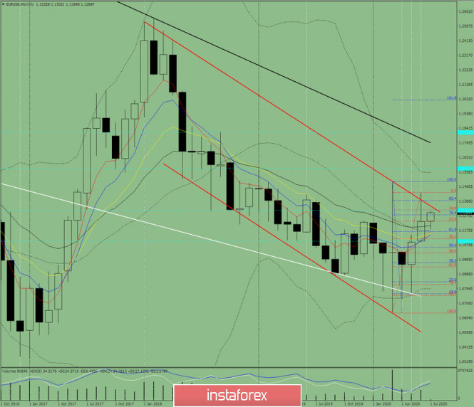 Технический анализ на июль 2020 по валютной паре EUR/ USD.ИнстаФорекс - Instaforex, 5 лет назад Трендовый анализ. В июле возможно продолжение восходящего движения, с первой целью 1.1334 – линия сопротивления (красная жирная линия). В случае пробития этой линии вверх, следующая верхняя цель 1.1422 – верхний фрактал (синяя пунктирная линия) и конечная месячная цель 1.1546 – верхняя граница индикатора линии Боллинджера (чёрная пунктирная линия). От этого уровня возможна работа вниз. Рис. 1 (месячный график). Индикаторный анализ: - индикаторный анализ – вверх; - уровни Фибоначчи – вверх; - объёмы – вверх; - свечной анализ – вверх; - трендовый анализ – вверх; - линии Боллинджера – вверх; Вывод по комплексному анализу - вероятней всего верхняя работа. Общий итог расчёта свечи валютной пары EUR/ USD по месячному графику: цена вероятней всего будет иметь восходящую тенденцию с отсутствием первой нижней тени (первая неделя месяца – верхняя) у месячной белой свечи и отсутствием второй верхней тени (последняя неделя - белая). Верхний сценарий: от уровня 1.1233 (закрытие июньской месячной свечи) верхняя цель 1.1334 – линия сопротивления (красная жирная линия). В случае пробития этой линии вверх, следующая верхняя цель 1.1422 – верхний фрактал (синяя пунктирная линия) и конечная месячная цель 1.1546 – верхняя граница индикатора линии Боллинджера (чёрная пунктирная линия). Маловероятный сценарий: при движении вверх и достижении линии сопротивления 1.1334 (красная жирная линия) - работа вниз с целью 1.1120 – откатный уровень 38.2% (красная пунктирная линия). Следующая нижняя цель 1.1027 – откатный уровень 50.0% (красная пунктирная линия). Материал предоставлен компанией InstaForex - www.instaforex.com |