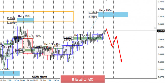 Контрольные зоны AUDUSD 06.07.20ИнстаФорекс - Instaforex, 5 лет назад Сегодняшний рост пары на азиатской сессии стал закономерным продолжением восходящего импульса, произошедшего во второй половине прошлой недели. Закрытие сегодняшних торгов выше уровня 0.6933 обозначит восходящий приоритет на текущую неделю. Работа в восходящем направлении будет вестись до недельной КЗ 0.7032-0.7014. Тест этой зоны позволит закрыть большую часть покупок. Альтернативная модель получит развитие в случае, если закрытие сегодняшних торгов произойдет ниже НКЗ 1/2. Это укажет на продолжение формирования зоны накопления. Вероятность образования данной модели составляет 30%, что делает ее вспомогательной. Дневная КЗ - дневная контрольная зона. Зона, образованная важными данными с фьючерсного рынка, которые изменяются несколько раз в год. Недельная КЗ - недельная контрольная зона. Зона, образованная важными отметками фьючерсного рынка, которые изменяются несколько раз в год. Месячная КЗ - месячная контрольная зона. Зона, которая является отражением средней волатильности за последний год. Материал предоставлен компанией InstaForex - www.instaforex.com |