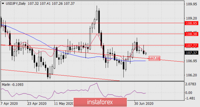 Прогноз по USD/JPY на 7 июля 2020 годаИнстаФорекс - Instaforex, 5 лет назад USD/JPY Но основная тенденция сохраняется «бычьей», вопрос в том, сумеет ли она таковой сохраниться, для чего цена не должна уйти ниже 107.00, то есть под линию Крузенштерна на daily, и когда же цена преодолеет сопротивление 107.77, чтобы уверенно продолжить рост к 108.38 и 108.95.