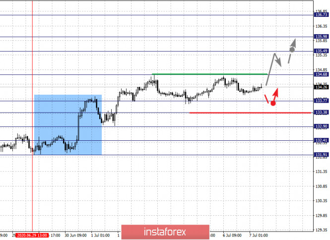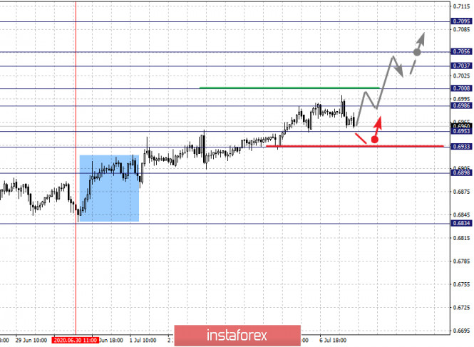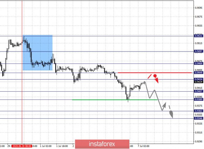 Фрактальный анализ по основным валютным парам на 7 июляИнстаФорекс - Instaforex, 5 лет назад Здравствуйте, уважаемые коллеги. По паре Евро/Доллар цена оформила потенциал для верха от 1 июля, продолжения развития данной структуры ожидаем после пробоя 1.1312, уровень 1.1245 ключевая поддержка. По паре Фунт/Доллар следим за восходящей структурой от 30 июня, уровень 1.2508 ключевое сопротивление, уровень 1.2413 ключевая поддержка. По паре Доллар/Франк ожидаем движение к уровню 0.9407, уровень 0.9449 ключевая поддержка. По паре Доллар/Иена продолжения развития восходящей тенденции от 23 июня ожидаем после пробоя уровня 107.95, уровень 107.37 ключевая поддержка. По паре Евро/Иена продолжения развития восходящей тенденции от 26 июня ожидаем после прохода ценой шумового диапазона 121.66 – 121.87. По паре Фунт/Иена продолжения развития восходящей структуры от 29 июня ожидаем после пробоя 134.70, уровень 133.38 ключевая поддержка. Прогноз на 7 июля: Аналитический обзор валютных пар в масштабе Н1: По паре Евро/Доллар ключевыми уровнями в масштабе Н1 являются: 1.1424, 1.1393, 1.1349, 1.1312, 1.1274, 1.1245 и 1.1183. Здесь цена оформила потенциал для восходящего движения от 1 июля. Продолжения движения кверху ожидаем после пробоя 1.1312, в данном случае цель – 1.1349, возле этого уровня консолидация. Проход ценой уровня 1.1350 должен сопровождаться выраженным восходящим движением, в данном случае цель – 1.1393. Потенциальным значением для верха считаем уровень 1.1424, по достижении которого ожидаем консолидацию, а также откат книзу. Краткосрочное нисходящее движение возможно в коридоре 1.1274 – 1.1245, пробой последнего значения будет располагать к формированию нисходящей структуры, в данном случае потенциальная цель – 1.1183, до этого уровня ожидаем оформления начальных условий для низа. Основная тенденция – потенциал для верха от 1 июля Торговые рекомендации: Buy: 1.1312 Take profit: 1.1346 Buy: 1.1350 Take profit: 1.1390 Sell: 1.1274 Take profit: 1.1247 Sell: 1.1243 Take profit: 1.1185 По паре Фунт/Доллар ключевыми уровнями в масштабе Н1 являются: 1.2696, 1.2630, 1.2597, 1.2547, 1.2508, 1.2456, 1.2413 и 1.2349. Здесь мы следим за развитием восходящего цикла от 30 июня. Краткосрочное нисходящее движение ожидаем в коридоре 1.2508 – 1.2547, пробой последнего значения приведет к выраженному восходящему движению, здесь цель – 1.2597, в коридоре 1.2597 – 1.2630 консолидация. Потенциальным значением для верха считаем уровень 1.2696, по достижении которого ожидаем откат книзу. Краткосрочное нисходящее движение ожидаем в коридоре 1.2456 – 1.2413, пробой последнего значения приведет к углубленной коррекции, здесь цель – 1.2349, этот уровень является ключевой поддержкой для верха. Основная тенденция – восходящая структура от 30 июня Торговые рекомендации: Buy: 1.2508 Take profit: 1.2545 Buy: 1.2548 Take profit: 1.2595 Sell: 1.2455 Take profit: 1.2415 Sell: 1.2410 Take profit: 1.2355 По паре Доллар/Франк ключевыми уровнями в масштабе Н1 являются: 0.9497, 0.9449, 0.9434, 0.9407, 0.9389, 0.9363 и 0.9346. Здесь мы следим за нисходящей структурой от 30 июня, на текущий момент ожидаем движение к уровню 0.9407, в коридоре 0.9407 – 0.9389 краткосрочное нисходящее движение, а также консолидация. Пробой уровня 0.9389 должен сопровождаться выраженным нисходящим движением, здесь цель – 0.9363. Потенциальным значением для низа считаем уровень 0.9346, по достижении которого ожидаем консолидацию, а также откат кверху. Краткосрочное восходящее движение ожидаем в коридоре 0.9434 – 0.9449, пробой последнего значения приведет к углубленной коррекции, здесь цел