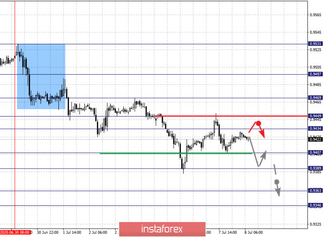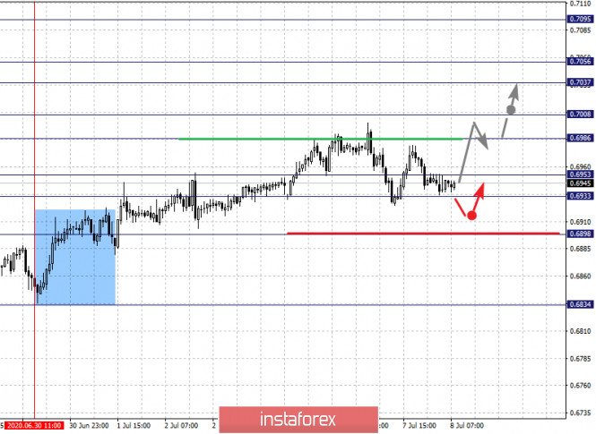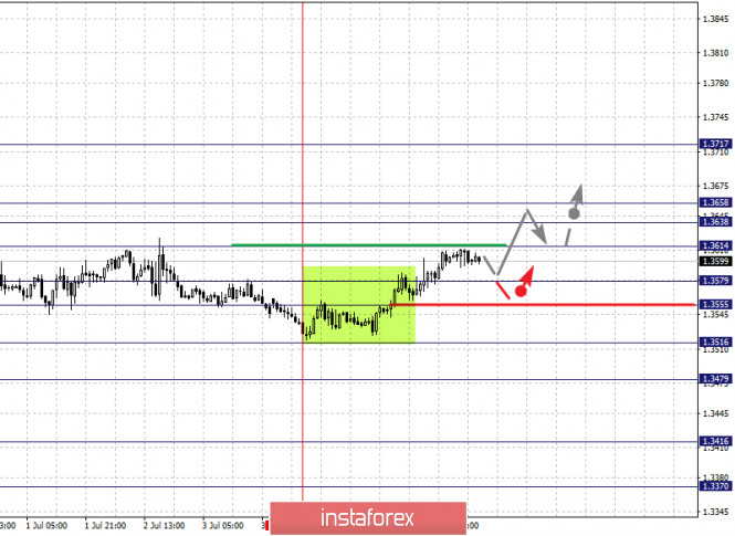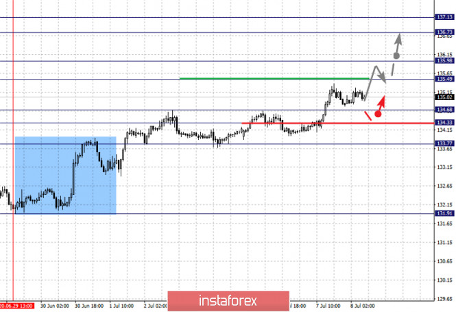 Фрактальный анализ по основным валютным парам на 8 июляИнстаФорекс - Instaforex, 5 лет назад По паре Евро/Доллар цена оформила потенциал для верха от 1 июля, продолжения развития данной структуры ожидаем после пробоя 1.1312, уровень 1.1245 ключевая поддержка. По паре Фунт/Доллар основного развития восходящей тенденции ожидаем после пробоя 1.2630. По паре Доллар/Франк цена находится в коррекции от нисходящей структуры, уровень 0.9449 ключевая поддержка. По паре Доллар/Иена возобновления восходящей тенденции от 23 июня ожидаем после пробоя уровня 107.95, уровень 107.37 ключевая поддержка. По паре Евро/Иена продолжения развития восходящей тенденции от 26 июня ожидаем после прохода ценой шумового диапазона 121.66 – 121.87. По паре Фунт/Иена продолжения развития восходящей структуры от 29 июня ожидаем после пробоя 135.50, уровень 134.33 ключевая поддержка. Прогноз на 8 июля: Аналитический обзор валютных пар в масштабе Н1: По паре Евро/Доллар ключевыми уровнями в масштабе Н1 являются: 1.1424, 1.1393, 1.1349, 1.1312, 1.1274, 1.1245 и 1.1183. Здесь мы следим за восходящей структурой от 1 июля. Продолжения движения кверху ожидаем после пробоя 1.1312, в данном случае цель – 1.1349, возле этого уровня консолидация. Проход ценой уровня 1.1350 должен сопровождаться выраженным восходящим движением, в данном случае цель – 1.1393. Потенциальным значением для верха считаем уровень 1.1424, по достижении которого ожидаем консолидацию, а также откат книзу. Краткосрочное нисходящее движение возможно в коридоре 1.1274 – 1.1245, пробой последнего значения будет располагать к формированию нисходящей структуры, в данном случае потенциальная цель – 1.1183, до этого уровня ожидаем оформления начальных условий для низа. Основная тенденция – потенциал для верха от 1 июля Торговые рекомендации: Buy: 1.1312 Take profit: 1.1346 Buy: 1.1350 Take profit: 1.1390 Sell: 1.1274 Take profit: 1.1247 Sell: 1.1243 Take profit: 1.1185 По паре Фунт/Доллар ключевыми уровнями в масштабе Н1 являются: 1.2749, 1.2696, 1.2630, 1.2597, 1.2525, , 1.2490 и 1.2447. Здесь мы следим за развитием восходящего цикла от 30 июня. Краткосрочное восходящее движение ожидаем в диапазоне 1.2597 – 1.2630, пробой последнего значения должен сопровождаться выраженным восходящим движением, здесь цель – 1.2696. Потенциальным значением для верха считаем уровень 1.2749, по достижении этого уровня ожидаем консолидацию, а также откат книзу. Краткосрочное нисходящее движение ожидаем в коридоре 1.2525 – 1.2490, пробой последнего значения приведет к углубленной коррекции, здесь цель – 1.2447, этот уровень является ключевой поддержкой для верха. Основная тенденция – восходящая структура от 30 июня Торговые рекомендации: Buy: 1.2597 Take profit: 1.2630 Buy: 1.2632 Take profit: 1.2694 Sell: 1.2525 Take profit: 1.2492 Sell: 1.2489 Take profit: 1.2448 По паре Доллар/Франк ключевыми уровнями в масштабе Н1 являются: 0.9497, 0.9449, 0.9434, 0.9407, 0.9389, 0.9363 и 0.9346. Здесь мы следим за нисходящей структурой от 30 июня. В коридоре 0.9407 – 0.9389 ожидаем краткосрочное нисходящее движение, а также консолидацию. Пробой уровня 0.9389 должен сопровождаться выраженным нисходящим движением, здесь цель – 0.9363. Потенциальным значением для низа считаем уровень 0.9346, по достижении которого ожидаем консолидацию, а также откат кверху. Краткосрочное восходящее движение ожидаем в коридоре 0.9434 – 0.9449, пробой последнего значения приведет к углубленной коррекции, здесь цель – 0.9469, этот уровень является ключевой поддержкой для низа, его проход ценой будет располагать к формированию началь