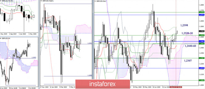 EUR/USD и GBP/USD 8 июля – рекомендации технического анализаИнстаФорекс - Instaforex, 5 лет назад EUR/USD и GBP/USD 8 июля – рекомендации технического анализа EUR/USD Пара протестировала зону влияния предыдущего максимума (1,1349) и вернулась к скоплению уровней дневного креста (Тенкан 1,1265). Общая ситуация не изменилась, основные задачи и цели остаются прежними. Медведей от восстановления своих преимуществ отделяют поддержки 1,1245 (месячный Киджун) – 1,1197 (верхняя граница недельного облака) – 1,1167 (недельный Фибо Киджун). Работа выше данных поддержек оставляет возможности усиления игроков на повышение, для которых после обновления 1,1349 встанет вопрос о преодолении сопротивлений 1,1389–1,1422 (месячный Фибо Киджун + максимальный экстремум июня). На младших временных интервалах идёт борьба за обладание наиболее важными уровнями. Сегодня они объединяют свои усилия в районе 1,1288-68 (центральный Пивот-уровень + недельная долгосрочная тенденция). Закрепление под уровнями и разворот мувинга изменит баланс сил на Н1 в пользу игроков на понижение. Ориентирами для снижения внутри дня могут выступить классические Пивот-уровни 1,1245 – 1,1215 – 1,1172. Работа выше ключевых уровней (1,1288-68) сохраняет действующее преимущество на стороне игроков на повышение. Повышательные ориентиры, в виде сопротивлений классических Пивот-уровней, расположены сегодня на 1,1318 – 1,1361 – 1,1391. GBP/USD Игроки на повышение продолжают использовать силу значимых поддержек в районе 1,2440-60 (месячный крест + дневной Тенкан) для тестирования сопротивлений. Сопротивления сейчас расположены на 1,2520-30 (дневной Киджун + недельный Фибо Киджун) и 1,2598 (дневной Фибо Киджун). Закрепление выше позволит ликвидировать дневной мёртвый крест и откроет дорогу к следующим ориентирам. Потеря поддержек (1,2440-60) поспособствует появлению новых возможностей для игроков на понижение, но говорить о медвежьих перспективах можно будет лишь после преодоления недельного среднесрочного тренда 1,2307. На Н1 игроки на повышение сумели вчера удержаться выше недельной долгосрочной тенденции, благодаря чему продолжили подъём, обновив максимум прошлой недели. В настоящий момент пара вновь находится в зоне зарождающейся коррекции. Повышательные ориентиры, в виде классических Пивот-уровней, расположены сегодня на 1,2600 – 1,2660 – 1,2729. Ключевые поддержки в случае развития коррекционного снижения встретят пару на 1,2531 (центральный Пивот-уровень) и 1,2489 (недельная долгосрочная тенденция). Закрепление ниже и разворот мувинга повлияет на действующий баланс сил и сформирует предпосылки для дальнейшего усиления медвежьих настроений. Поддержки классических Пивот-уровней можно отметить 1,2471 – 1,2402 – 1,2342. Ichimoku Kinko Hyo (9.26.52), Pivot Points (классические), Moving Avarage (120) Материал предоставлен компанией InstaForex - www.instaforex.com |