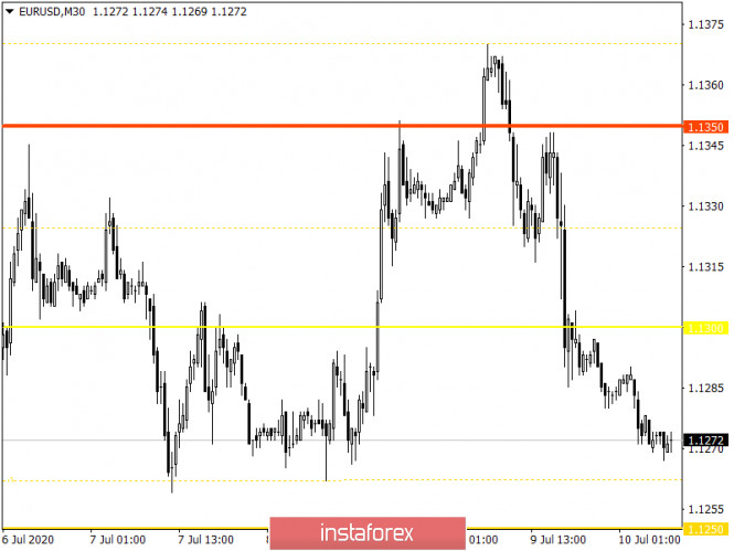 Горящий прогноз по EUR/USD на 10.07.2020 и торговая рекомендацияИнстаФорекс - Instaforex, 5 лет назад Федеральная Резервная Система изрядно напугала участников рынка перспективой новых стимулирующих мер, основываясь лишь на том, что темпы восстановления экономики слишким уж медленные. Якобы, макроэкономическая динамика скорее указывает на затяжную депрессию. И были все основания полагать, что данные по заявкам на пособия по безработице станут лишь очередным доказательством этих страхов. Но достаточно одного взгляда на график единой европейской валюты, чтобы понять, что что-то пошло не так. Правда в чрезмерной осторожности Федеральной Резервной Системы нет ничего странного, так как регулятор обязан так себя вести, и заранее исходить из самых худших вариантов развития ситуации. Данные по заявкам на пособия по безработице столь сильно отличались от прогнозов, что участникам рынка даже потребовалось некоторое время на их осмысление. Изначально предполагалось, что число первичных заявок на пособия по безработице сократится с 1 427 тыс. до 1 380 тыс., а повторных, с 19 290 тыс. до 19 200 тыс. И по хорошему, если бы эти прогнозы оправдались, то это говорило бы о том, что действительно, темпы восстановления экономической активности крайне низкие, и необходимо срочно предпринимать какие-то экстренные меры. Иначе Америку ждет затяжная экономическая депрессия. Однако, число первичных заявок на пособия по безработице сократилось до 1 314 тыс., а повторных до 18 062 тыс. Более того, предыдущие значения были пересмотрены в меньшую сторону. Так, первичных заявок оказалось 1 413 тыс., а повторных всего лишь 18 760 тыс. Иными словами, Иными словами, темпы восстановления рынка труда, заметно выше, нежели предполагалось. Причем, уже относительно давно. И именно пересмотр предыдущих результатов заставил участников рынка несколько задуматься, что и стало причиной запоздалой реакции рынка. Число повторных заявок на пособия по безработице (Соединенные Штаты): Оптимизм в отношении доллара будет сохраняться и сегодня, так как наравне с рынком труда, огромное значение имеет и инфляционная динамика. А темпы спада цен производителей должны замедлиться с -0,8% до -0,3%. Учитывая что цены производителей являются опережающим показателем для инфляции, то значит и потребительские цены в скором времени начнут расти. При этом, есть основания полагать, что данные окажутся немного лучше, и темпы спада цен производителей замедляться до -0,2%, что еще больше порадует инвесторов. Цены производителей (Соединенные Штаты): С точки зрения технического анализа мы видим интенсивный нисходящий ход от диапазонного уровня 1,1350, который сыграл роль сопротивления на рынке. Восстановление цены составляет 100%, относительно скачка активности 8 июля, где точкой переменной опоры служит район 1,1260/1,1270. Высокий уровень волатильности подтверждается спекулятивным ажиотажем на рынке, на основе которого возникают импульсные скачки. Рассмотрения торгового графика в общем плане (дневной период), фиксируется движение цены в границах ранее заданного коридора 1,1180//1,1250//1,1350, где котировка практически достигла среднего уровня. Можно предположить, что в случае фиксации цены, чем 1,1260, возникнет очередной виток коротких позиций, который приведет к пробою среднего уровня 1,1250 и направит котировку в сторону значений 1,1200-1,1190. Аль