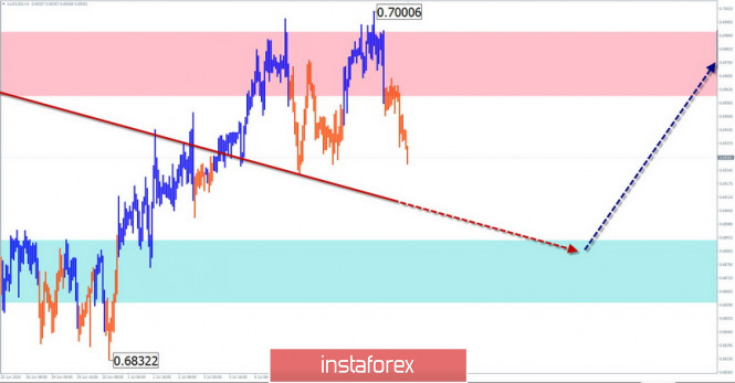 Упрощенный волновой анализ и прогноз GBP/USD и AUD/USD на 10 июляИнстаФорекс - Instaforex, 5 лет назад GBP/USD Анализ: На ценовом графике английского фунта стерлингов продолжается формирование сложной коррекционной медвежьей структуры дневного масштаба. В последнем незавершенном участке от 10 июня близка к окончанию средняя часть движения (В). Прогноз: Сегодня ожидается завершение вчерашнего отката и повторная попытка прорыва вверх. Разворот можно ждать в районе расчетной поддержки. При смене курса не исключен кратковременный прокол нижней границы зоны. Фаза роста более вероятна на американской сессии. Зоны потенциального разворота Сопротивление: - 1.2660/1.2690 Поддержка: - 1.2570/1.2540 Рекомендации: Основное внимание сегодня стоит уделить поиску сигналов покупки фунта. Стоит учитывать ограниченный потенциал текущего подъема и высокую вероятность смены краткосрочного тренда в ближайшие дни. AUD/USD Анализ: Движения австралийского доллара укладываются в алгоритм коррекции доминирующего с марта восходящего тренда. Весь прошедший месяц цена двигалась в боковой плоскости, образуя горизонтальный вымпел. Волна вошла в заключительную фазу. Прогноз: Сегодня ожидается общий нисходящий настрой движения. На ближайшей сессии возможен кратковременный подъем в район сопротивления. Расчетная поддержка показывает верхнюю границу предварительной целевой зоны текущей коррекции. Зоны потенциального разворота Сопротивление: - 0.6960/0.6990 Поддержка: - 0.6890/0.6860 Рекомендации: Сегодня на рынке пары условий для покупок нет. На конце встречных движений рекомендуются продажи пары. Стоит учитывать ограниченный потенциал текущего снижения. Пояснения: В упрощенном волновом анализе (УВА) волны состоят из 3 частей (А-В-С). Анализируется последняя незавершенная волна. Сплошным фоном стрелок показана сформированная структура, пунктирным - ожидаемые движения. Внимание: Волновой алгоритм не учитывает продолжительность движений инструмента по времени! Материал предоставлен компанией InstaForex - www.instaforex.com |