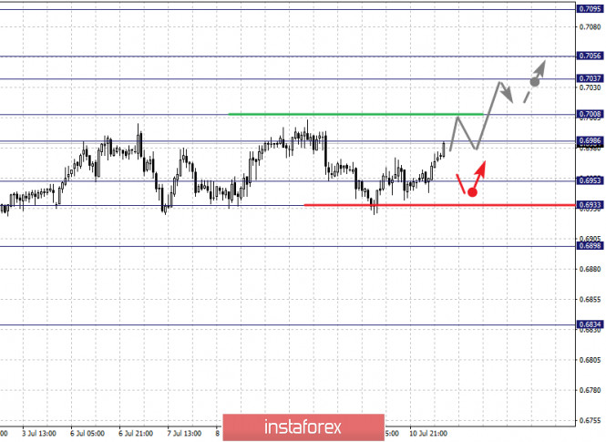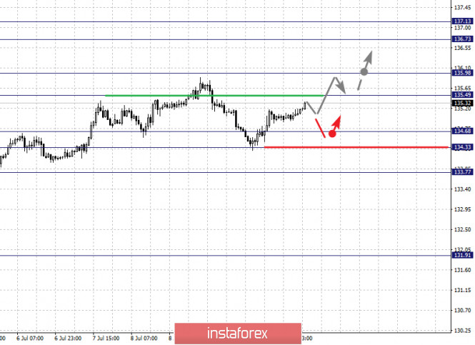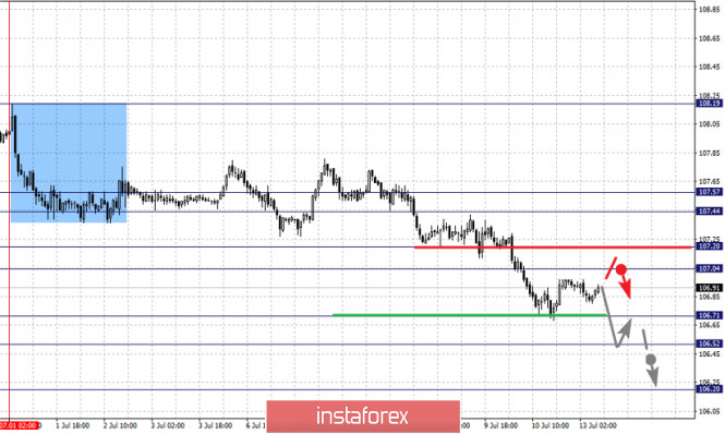 Фрактальный анализ по основным валютным парам на 13 июляИнстаФорекс - Instaforex, 5 лет назад Здравствуйте, уважаемые коллеги. По паре Евро/Доллар цена близка к отмене нисходящей структуры от 9 июля, для чего необходим пробой 1.1343. По паре Фунт/Доллар продолжения движения кверху ожидаем после пробоя 1.2697, уровень 1.2557 ключевая поддержка. По паре Доллар/Франк цена формирует потенциал для верха от 9 июля, уровень 0.9427 ключевое сопротивление, уровень 0.9380 ключевая поддержка. По паре Доллар/Иена продолжение движения книзу возможно после пробоя 106.71, уровень 107.20 ключевая поддержка. По паре Евро/Иена цена формирует потенциал для низа от 9 июля, развитие которого возможно после пробоя 120.51, уровень 121.38 ключевая поддержка. По паре Фунт/Иена продолжения развития восходящей структуры от 29 июня ожидаем после пробоя 135.50, уровень 134.30 ключевая поддержка. Прогноз на 13 июля: Аналитический обзор валютных пар в масштабе Н1: По паре Евро/Доллар ключевыми уровнями в масштабе Н1 являются: 1.1371, 1.1343, 1.1283, 1.1257, 1.1224, 1.1182 и 1.1154. Здесь цена формирует потенциал для нисходящего движения от 9 июля и на текущий момент близка к отмене данной структуры, для чего необходим пробой уровня 1.1343, в данном случае потенциальная цель для верха 1.1371, до этого уровня ожидаем оформления локальных начальных условий для верха. Краткосрочное нисходящее движение ожидаем в диапазоне 1.1283 – 1.1257, пробой последнего значения начнет развитие нисходящей структуры от 9 июля, в данном случае первая цель – 1.1224, возле этого уровня консолидация. Пробой 1.1222 приведет к выраженному нисходящему движению, здесь цель – 1.1182. Потенциальным значением для низа считаем уровень 1.1154, по достижении которого ожидаем консолидацию, а также откат кверху. Основная тенденция – восходящая структура от 1 июля, формирование потенциала для нисходящего движения от 9 июля Торговые рекомендации: Buy: 1.1344 Take profit: 1.1370 Buy: Take profit: Sell: 1.1283 Take profit: 1.1258 Sell: 1.1255 Take profit: 1.1226 По паре Фунт/Доллар ключевыми уровнями в масштабе Н1 являются: 1.2797, 1.2749, 1.2697, 1.2597, 1.2557 и 1.2490. Здесь мы следим за развитием восходящего цикла от 30 июня. Продолжения движения кверху ожидаем после пробоя 1.2698, в данном случае цель 1.2749, от этого значения существует высокая вероятность разворота в коррекцию. Потенциальным значением для верха считаем уровень 1.2797. Краткосрочное нисходящее движение ожидаем в коридоре 1.2597 – 1.2557, пробой последнего значения приведет к углубленной коррекции, здесь цель – 1.2490, этот уровень является ключевой поддержкой для верха. Основная тенденция – восходящая структура от 30 июня Торговые рекомендации: Buy: 1.2698 Take profit: 1.2747 Buy: 1.2751 Take profit: 1.2796 Sell: 1.2596 Take profit: 1.2558 Sell: 1.2555 Take profit: 1.2492 По паре Доллар/Франк ключевыми уровнями в масштабе Н1 являются: 0.9474, 0.9456, 0.9444, 0.9427, 0.9391, 0.9380, 0.9362 и 0.9346. Здесь цена находится в коррекции от нисходящей структуры и формирует потенциал для верха от 9 июля. Продолжения движения кверху ожидаем после пробоя 0.9427, в данном случае цель – 0.9444, в коридоре 0.9444 – 0.9456 консолидация цены. Потенциальным значением для верха считаем уровень 0.9474, по достижении этого уровня ожидаем откат книзу. Диапазон 0.9391 – 0.9380 является ключевой поддержкой, его проход ценой приведет к последующему развитию нисходящей тенденции, в данном случае цель – 0.9362. В качестве потенциального значения для низа пока рассматриваем уровень 0.9346. Основная тенденция – нисходящая структу