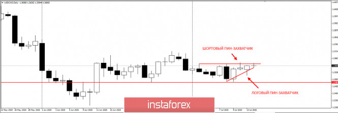 USDCAD – отмена шортового сценарияИнстаФорекс - Instaforex, 5 лет назад Добрый день, уважаемые трейдеры! Согласно вчерашней торговой рекомендации по USDCAD, мы рекомендовали продавать инcтрумент с отката от пин-бара в шортовой тенденции: Вчерашний день закрылся также пин-баром, но уже в лонговой тенденции: Этот сигнал отменяет шортовый сценарий. Но при этом не даёт лонговый, т.к. идёт череда противоречий - это значит, что инструмент находится в состоянии неопределённости. Успехов в торговле и контролируйте риски! |