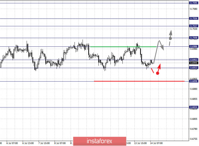Фрактальный анализ по основным валютным парам на 14 июляИнстаФорекс - Instaforex, 5 лет назад Здравствуйте, уважаемые коллеги. По паре Евро/Доллар следим за восходящей структурой от 10 июля, уровень 1.1381 ключевое сопротивление, уровень 1.1312 ключевая поддержка. По паре Фунт/Доллар цена пока находится в коррекции от восходящей структуры, до уровня 1.2490 ожидаем начальных условий для низа. По паре Доллар/Франк цена формирует потенциал для верха от 9 июля, уровень 0.9427 ключевое сопротивление, уровень 0.9380 ключевая поддержка. По паре Доллар/Иена цена оформила выраженные начальные условия для верха от 10 июля, уровень 107.38 ключевое сопротивление, уровень 107.01 ключевая поддержка. По паре Евро/Иена следим за формированием восходящей структуры от 10 июля, уровень 122.03 ключевое сопротивление. По паре Фунт/Иена цена находится в коррекции и формирует выраженный потенциал для низа от 9 июля. Прогноз на 14 июля: Аналитический обзор валютных пар в масштабе Н1: По паре Евро/Доллар ключевыми уровнями в масштабе Н1 являются: 1.1466, 1.1421, 1.1381, 1.1330, 1.1312, 1.1283 и 1.1257. Здесь мы следим за формированием восходящей структуры от 10 июля. Продолжения движения кверху ожидаем после пробоя 1.1381, в данном случае цель – 1.1421, возле этого уровня консолидация. Пробой 1.1421 позволит рассчитывать на движение к потенциальной цели – 1.1466, по достижении которой ожидаем откат книзу. Краткосрочное нисходящее движение возможно в коридоре 1.1330 – 1.1312, пробой последнего значения приведет к углубленной коррекции, здесь цель – 1.1283, этот уровень является ключевой поддержкой для верха. Основная тенденция – формирование восходящей структуры от 10 июля Торговые рекомендации: Buy: 1.1381 Take profit: 1.1420 Buy: 1.1423 Take profit: 1.1465 Sell: 1.1330 Take profit: 1.1313 Sell: 1.1310 Take profit: 1.1285 По паре Фунт/Доллар ключевыми уровнями в масштабе Н1 являются: 1.2797, 1.2749, 1.2697, 1.2636, 1.2557 и 1.2490. Здесь мы следим за развитием восходящего цикла от 30 июня. Возобновления движения кверху ожидаем после пробоя 1.2636, в данном случае первая цель 1.2697. Пробой уровня 1.2698, позволит рассчитывать на движение к уровню 1.2749, от этого значения существует высокая вероятность разворота в коррекцию. Потенциальным значением для верха считаем уровень 1.2797. Краткосрочное нисходящее движение ожидаем в коридоре 1.2557 – 1.2490, до уровня 1.2490 ожидаем оформления начальных условий для нисходящего цикла. Основная тенденция – восходящая структура от 30 июня, стадия коррекции Торговые рекомендации: Buy: 1.2636 Take profit: 1.2695 Buy: 1.2698 Take profit: 1.2747 Sell: Take profit: Sell: 1.2555 Take profit: 1.2492 По паре Доллар/Франк ключевыми уровнями в масштабе Н1 являются: 0.9474, 0.9456, 0.9444, 0.9427, 0.9391, 0.9380, 0.9362 и 0.9346. Здесь цена находится в коррекции от нисходящей структуры и формирует потенциал для верха от 9 июля. Продолжения движения кверху ожидаем после пробоя 0.9427, в данном случае цель – 0.9444, в коридоре 0.9444 – 0.9456 консолидация цены. Потенциальным значением для верха считаем уровень 0.9474, по достижении этого уровня ожидаем откат книзу. Диапазон 0.9391 – 0.9380 является ключевой поддержкой, его проход ценой приведет к последующему развитию нисходящей тенденции, в данном случае цель – 0.9362. В качестве потенциального значения для низа пока рассматриваем уровень 0.9346. Основная тенденция – нисходящая структура от 30 июня, формирование потенциала для верха от 9 июля. Торговые рекомендации: Buy: 0.9428 Take profit: 0.9444 Buy: 0.9456 Take profit: 0.9474 Sell: 0.9390 Take profit: 0.9383 Sell: 0.9380 Take profit: 0.9362 По паре Доллар/