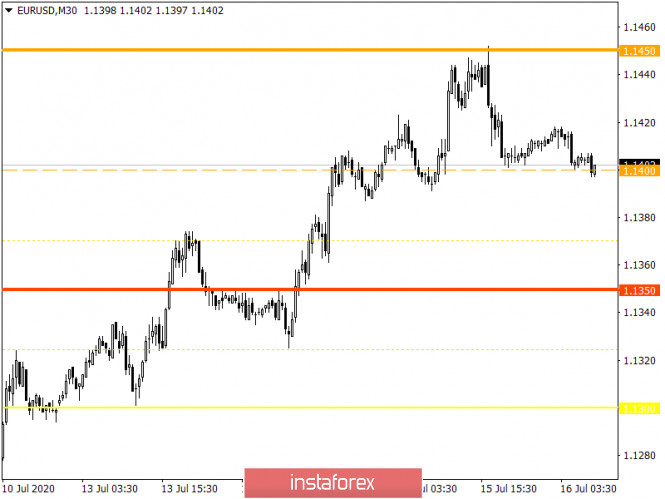 Горящий прогноз по EUR/USD на 16.07.2020 и торговая рекомендацияИнстаФорекс - Instaforex, 5 лет назад Единая европейская валюта, во многом по инерции, довольно неплохо росла. Но именно что по инерции, так как развить и закрепить свои успехи она не смогла. По сути дела, она вернулась ровно туда, с чего и начинала вчерашний день. При этом снижаться единая европейская валюта стала на фоне относительно слабой американской статистике. Так что получается, что еще единая европейская валюта была существенно перекуплена. Хотя, на первый взгляд, нет ничего удивительного в том, что единая европейская валюта стала снижаться на фоне данных по американской промышленности, так как темпы ее спада замедлились с -15,4% до -10,8%. Вроде как все хорошо, и промышленность постепенно восстанавливается. Однако все дело в том, что ожидали замедления спада до -6,2%. Так что темпы восстановления гораздо меньше, нежели прогнозировалось. А самое главное, что это пугающе совпадает с тем, что говорит Федеральная Резервная Система о том, что темпы восстановления экономической активности крайне низкие. Промышленное производство (Соединенные Штаты): Понятное дело, что главным событием сегодняшнего дня станет заседание правления Европейского Центрального Банка. Однако, скорее всего, именно это событие как раз никакого влияния на рынок не окажет. Нет никаких сомнений, что все параметры монетарной политики останутся неизменными, так что все внимание только лишь к последующей пресс-конференции. Однако на фоне ожидаемого роста инфляции и относительно неплохих показателей состояния рынка труда, особенно в сравнении с Соединенными Штатами, Кристин Лагард может вообще ничего не сказать. Точнее, глава Европейского Центрального Банка вновь будет говорить о необходимости пристально следить за ситуацией и готовности регулятора принять экстренные меры в случае необходимости. То есть вновь будут звучать дежурные фразы, которые мало интересны участникам рынка. Ставка рефинансирования (Европа): В этой связи инвесторы могут переключиться на американскую статистику, что приведет к дальнейшему укреплению доллара. Во-первых, темпы спада розничных продаж могут замедлиться с -6,1% до -3,0%, что станет просто очередным подтверждением того, что американская экономика постепенно пытается восстанавливаться. Во-вторых, число заявок на пособия по безработице должно и дальше сокращаться. В частности, число первичных заявок должно уменьшиться с 1 314 тыс. до 1 290 тыс. Число же повторных с 18 062 тыс. до 17 700 тыс. Таким образом, относительно позитивный характер американских статистических данных будет способствовать дальнейшему укреплению доллара. Розничные продажи (Соединенные Штаты): С точки зрения технического анализа мы видим стремительное восходящее движение, в ходе чего котировке удалось подскочить к значению 1,1452, где было найдено сопротивление и как результат застой с последующим откатом. Стоит отметить, что район сопротивления неоднократно подтверждался на истории, где на закономерной основе возникли короткие позиции. Рассмотрения торгового графика в общем плане (дневной период), видно восходящее движение, которое имеет место на рынке уже больше трех месяцев. Схожая ситуация была в начале марта, где район 1,1450/1,1500 сыграл роль сопротивления. Можно предположить, что в случае если район сопротивления