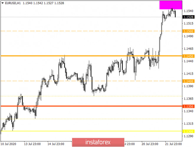 Горящий прогноз по EUR/USD на 22.07.2020 и торговая рекомендацияИнстаФорекс - Instaforex, 5 лет назад На первый взгляд, все совершенно логично - главы стран Европейского Союза наконец пришли к удовлетворяющему всех соглашению как по бюджету, так и по фонду поддержки пострадавшей из-за эпидемии коронавируса экономики, а единая европейская валюта существенно укрепилась. Да еще как договорились. На спасение пострадавшей экономики Старого Света выделяется аж 750 млрд евро. Из них 390 млрд евро выделяется в виде различных грантов, а еще 360 млрд евро в качестве кредитов. При этом действительно учтены пожелания наиболее бедных стран Европейского Союза, которые и так испытывают колоссальные проблемы с долгами. Кредиты будут выдавать под крайне низкие проценты, да еще на срок свыше тридцати лет. Единственное, что, наверное, может вызывать беспокойство, так это те самые гранты на 390 млрд евро. Дело в том, что из общей суммы в 750 млрд евро примерно 250 млрд евро должно быть направлено не на поддержку экономики или улучшение системы здравоохранения, а на различные экологические программы, особенно на перевод энергетики стран Европейского Союза на так называемую зеленую энергетику. И практически вся эта сумма приходится именно на гранты. Учитывая тот факт, что в Европейском Союзе развитием подобных технологий занимаются исключительно богатейшие страны, то получается, что и получат их они же. Причем безвозмездно. А вот не столь богатые страны Европейского Союза могут рассчитывать лишь на новые кредиты. Пусть возвращать их и придется не скоро, это все равно ставит их во все большую и большую зависимость от Берлина с Парижем. Так что долгосрочный эффект от этих мер может оказаться не столь впечатляющим, как выглядит на бумаге и на словах различных политиков. Однако настораживает тот факт, что основной рост единой европейской валюты начался только после открытия американской сессии. Ведь получается, что развитие событий на рынке во многом зависит от настроения именно американских трейдеров, а не какого-то там реального положения дел в экономике тех или иных стран. Так что как только американские трейдеры посчитают, что ситуация в Соединенных Штатах хоть немного улучшается, как доллар начнет стремительно дорожать. Возможно, даже быстрее, нежели сейчас дорожает единая европейская валюта. Кроме этого, это лишь в очередной раз подтверждает предположение о том, что единая европейская валюта сейчас чрезмерно перекуплена. Сегодня как раз есть повод для роста оптимизма в отношении доллара. Да, до открытия американской сессии единая европейская валюта может по инерции еще немного расти. Но уже через пару часов после того как к работе приступят американские трейдеры, будут публиковаться данные по продаже жилья на вторичном рынке Соединенных Штатов. И сами эти продажи должны вырасти на 23,0%, с 3,91 млн до 4,70 млн. Это крайне внушительный рост. Да и единая европейская валюта заметно перекуплена. Так что даже не столь значимых данных может оказаться вполне достаточно. Продажи жилья на вторичном рынке (Соединенные Штаты): С точки зрения технического анализа мы видим инерционный ход цены, где европейской валюте удалось обновить максимум текущего года, закрепляя котировку выше чем 1,1545. Спекулятивный интерес вкупе с потоком информационного фона - вот что мы имели в период м