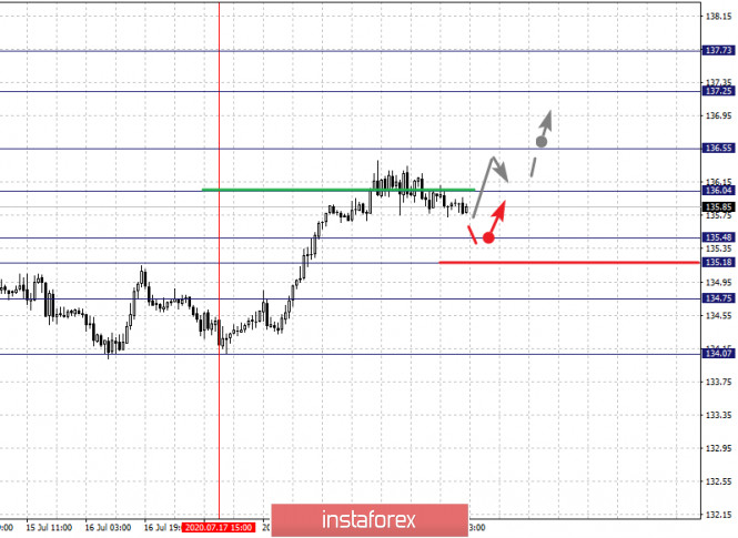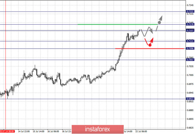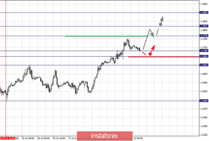 Фрактальный анализ по основным валютным парам на 22 июляИнстаФорекс - Instaforex, 5 лет назад Прогноз на 22 июля: Аналитический обзор валютных пар в масштабе Н1: По паре Евро/Доллар ключевыми уровнями в масштабе Н1 являются: 1.1619, 1.1564, 1.1539, 1.1498, 1.1466 и 1.1421. Здесь, мы следим за восходящей структурой от 10 июля. Краткосрочное восходящее движение, ожидаем в диапазоне 1.1539 – 1.1564, пробой последнего значения приведет к выраженному восходящему движению, здесь потенциальная цель – 1.1619, достижении которого, ожидаем консолидацию, а также откат к низу. Краткосрочное нисходящее движение, возможно в коридоре 1.1498 – 1.1466, пробой последнего значения приведет к углубленной коррекции, здесь цель – 1.1421, этот уровень является ключевой поддержкой для верха. Основная тенденция – восходящая структура от 10 июля Торговые рекомендации: Buy: 1.1540 Take profit: 1.1562 Buy: 1.1565 Take profit: 1.1617 Sell: 1.1497 Take profit: 1.1468 Sell: 1.1464 Take profit: 1.1425 По паре Фунт/Доллар ключевыми уровнями в масштабе Н1 являются: 1.2885, 1.2823, 1.2778, 1.2709, 1.2684 и 1.2644. Здесь, мы следим за восходящей структурой от 14 июля. Краткосрочное восходящее движение ожидаем в коридоре 1.2778 – 1.2824. Потенциальным значением для верха, считаем уровень 1.2885, по достижении которого, ожидаем консолидацию, а также откат к низу. Краткосрочное нисходящее движение, возможно в коридоре 1.2709 – 1.2684, пробой последнего значения приведет к углубленной коррекции, здесь цель – 1.2644, этот уровень является ключевой поддержкой для верха. Основная тенденция – восходящий цикл от 14 июля. Торговые рекомендации: Buy: 1.2779 Take profit: 1.2821 Buy: 1.2826 Take profit: 1.2885 Sell: 1.2709 Take profit: 1.2685 Sell: 1.2682 Take profit: 1.2645 По паре Доллар/Франк ключевыми уровня в масштабе Н1 являются: 0.9384, 0.9359, 0.9343, 0.9308, 0.9286, 0.9255 и 0.9235. Здесь, мы следим за развитием нисходящего цикла от 16 июля. Краткосрочное нисходящее движение, ожидаем в диапазоне 0.9308 – 0.9286, пробой последнего значения приведет к выраженному нисходящему движению, здесь цель – 0.9255. Потенциальным значением для низа, считаем уровень 0.9235, по достижении которого, ожидаем консолидацию, а также откат к верху. Краткосрочное восходящее движение, ожидаем в диапазоне 0.9343 – 0.9359, пробой последнего значения приведет к углубленной коррекции, здесь цель – 0.9384, этот уровень является ключевой поддержкой для нисходящей структуры от 16 июля. Основная тенденция – нисходящая структура от 16 июля Торговые рекомендации: Buy: 0.9343 Take profit: 0.9357 Buy: 0.9361 Take profit: 0.9384 Sell: 0.9307 Take profit: 0.9288 Sell: 0.9284 Take profit: 0.9255 По паре Доллар/Иена ключевыми уровнями в масштабе являются: 107.29, 107.09, 106.95, 106.66, 106.41, 106.10 и 105.90. Здесь, цена формирует потенциал для нисходящего движения от 20 июля. Продолжения движения к низу, ожидаем после пробоя 106.66, в данном случае цель – 106.41, пробой которого, должен сопровождаться выраженным нисходящим движением, здесь цель – 106.10. Потенциальным значением для низа, считаем уровень 105.90, по достижении которого, ожидаем консолидацию, а также откат к верху. Краткосрочное восходящее движение, возможно в диапазоне 106.95 – 107.09, пробой последнего значения приведет к углубленной коррекции, здесь цель – 107.29, этот уровень является ключевой поддержкой для низа. Основная тенденция: формирование нисходящего потенциала от 20 июля Торговые рекомендации: Buy: 106.95 Take profit: 107.07 Buy: 107.11 Take profit: 107.27 Sell: 106.65 Take profit: 106.45 Sell: 106.39 Take profit: 106.15 По паре Канадский доллар/Доллар ключевыми уровнями в масштабе Н1 являются: 1.3539, 1.3494, 1.3468, 1.3419, 1.3395, 1.3358 и 1.33