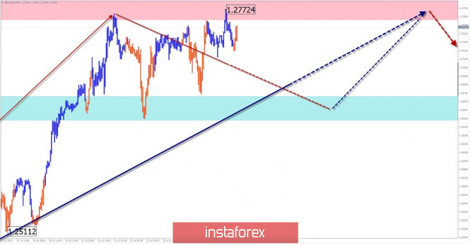 Упрощенный волновой анализ и прогноз EUR/USD и GBP/USD на 24 июляИнстаФорекс - Instaforex, 5 лет назад EUR/USD Анализ: На рынке евро продолжается восхождение котировок на «север» ценового графика. Предварительный расчет показывает вероятной зоной завершения текущего подъема район 119-й ценовой фигуры. Цена приближается к очередной зоне промежуточного сопротивления. Прогноз: Сегодня стоит ждать преимущественно бокового движения пары в коридоре между ближайшими встречными зонами. К концу суток повышается шанс возврата к восходящему движению, с возможным прорывом верхней границы ближайшего сопротивления. Зоны потенциального разворота Сопротивление: - 1.1720/1.1750 - 1.1620/1.1650 Поддержка: - 1.1540/1.1510 Рекомендации: На рынке евро сегодня возможны продажи, но стоит учитывать ограниченный потенциал снижения. В районе расчетной поддержки следует искать сигналы входа в длинные позиции. GBP/USD Анализ: Направление краткосрочных трендов английского фунта задает нисходящее волна от 10 июня. Текущий весь последний месяц восходящий откат пока не выходит за рамки коррекции этой волны. Цена достигла нижней границы вероятной зоны завершения, но сигналов разворота пока не наблюдается. Прогноз: В ближайшие сутки на графике фунта вероятен общий флетовый настрой движения. После попытки давления на зону сопротивления ожидается смена курса и снижение в район расчетной поддержки. После чего стоит ждать возобновление восходящего курса. Зоны потенциального разворота Сопротивление: - 1.2760/1.2790 Поддержка: - 1.2670/1.2640 Рекомендации: Торговля в ближайшие сессии возможна только короткими «пипсовочными» сделками. До появления четких сигналов разворота в приоритете покупки. В первой половине дня возможны кратковременные продажи пары. Пояснения: В упрощенном волновом анализе (УВА) волны состоят из 3 частей (А-В-С). Анализируется последняя незавершенная волна. Сплошным фоном стрелок показана сформированная структура, пунктирным - ожидаемые движения. Внимание: Волновой алгоритм не учитывает продолжительность движений инструмента по времени! Материал предоставлен компанией InstaForex - www.instaforex.com |