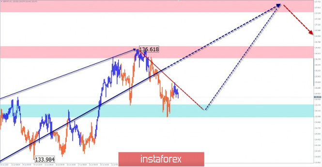 Упрощенный волновой анализ и прогноз EUR/USD, USD/JPY, GBP/JPY на 27 июляИнстаФорекс - Instaforex, 5 лет назад EUR/USD Анализ: Доминирующая с марта восходящая волна тренда евро достигла нижней границы предварительной целевой зоны. Зона спроецирована с крупного ТФ. Ее ширина более 2-х ценовых фигур. Сигналов разворота на графике пока нет, поэтому смены тренда в ближайшие дни не ожидается. Прогноз: В первой половине дня сегодня высока вероятность флетового настроя движения. Возможно снижение в район расчетной поддержки. К концу дня можно ждать продолжение восходящего курса, с попыткой прорыва ближайшего сопротивления. Зоны потенциального разворота Сопротивление: - 1.1810/1.1840 - 1.1720/1.1750 Поддержка: - 1.1660/1.1630 Рекомендации: Торговля против направления тренда на рынке евро по-прежнему остается рискованным занятием. Все внимание рекомендуется уделить поиску сигналов покупки инструмента. USD/JPY Анализ: На графике японской иены с конца марта цена развивается нисходящая коррекция бычьей волны старшего ТФ. Котировки пары достигли верхней границы зоны потенциального разворота крупного масштаба. Но структура нисходящей волны не показывает завершенности. Стоит ждать продолжение подъема. Прогноз: В ближайшие сутки на графике пары ожидается боковой настрой движения, между ближайшими встречными зонами. В первой половине дня вероятен кратковременный ценовой рост. Повторную попытку снижения можно ждать к концу дня либо завтра. Зоны потенциального разворота Сопротивление: - 106.00/106.30 Поддержка: - 105.30/105.00 Рекомендации: Торговля на рынке йены сегодня возможна только при внутридневном стиле торговли. Покупки могут быть рискованны, в них стоит снижать лот. Приоритет продажам пары. GBP/JPY Анализ: С 8 июня на графике кросса развивается нисходящий зигзаг. На дневном масштабе графика он корректирует предыдущий участок тренда. В структуре волны близится к завершению средняя часть (В). Сигналов разворота пока не наблюдается. Предварительная целевая зона находится в районе дальней зоны сопротивления. Прогноз: Сегодня ожидается перемещение котировок пары в боковом коридоре между ближайшими встречными зонами. На ближайшей сессии вероятен флетовой настрой. Активность вероятна в конце суток. При прорыве ближайшего сопротивления подъем продолжатся. Зоны потенциального разворота Сопротивление: - 137.50/137.80 - 136.40/136.70 Поддержка: - 135.30/135.00 Рекомендации: До появления четких однозначных сигналов разворота приоритет в торговых сделках стоит отдавать покупкам кросса. Пояснения: В упрощенном волновом анализе (УВА) волны состоят из 3 частей (А-В-С). Анализируется последняя незавершенная волна. Сплошным фоном стрелок показана сформированная структура, пунктирным - ожидаемые движения. Внимание: Волновой алгоритм не учитывает продолжительность движений инструмента по времени! Материал предоставлен компанией InstaForex - www.instaforex.com |
