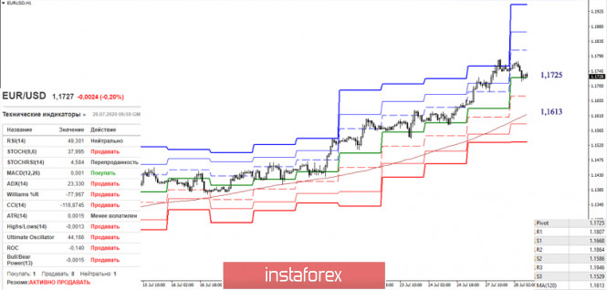 EUR/USD и GBP/USD 28 июля – рекомендации технического анализаИнстаФорекс - Instaforex, 5 лет назад EUR/USD и GBP/USD 28 июля – рекомендации технического анализа EUR/USD Пара продолжила подъём и к настоящему моменту достигла зоны, где объединились важные сопротивления-ориентиры данного участка – недельная цель на пробой облака Ишимоку (1,1695 – 1,1813) и нижняя граница месячного облака (1,1740). Встреченная зона сопротивлений достаточно широкая и сформирована сильными уровнями, поэтому формирование результата взаимодействия может занять определённое время и будет иметь важное значение для дальнейшего движения. В настоящий момент на младших временных интервалах пара находится в зоне развивающейся нисходящей коррекции. Игроки на понижение заручились большинством голосов среди анализируемых технических индикаторов и достигли поддержки центрального Пивот-уровня (1,1725). Преодоление уровня (1,1725) позволит рассмотреть дальнейшее развитие нисходящей коррекции, что может поспособствовать формированию отбоя от встреченных сопротивлений старших временных интервалов. Следующим понижательным ориентиром внутри дня будет служить недельная долгосрочная тенденция (1,1613), промежуточную поддержку можно отметить на 1,1668 (S1). В случае завершения коррекционного снижения и восстановления восходящего тренда интересы игроков на повышение будут направлены к сопротивлениям классических Пивот-уровней, которые сегодня расположены на 1,1807 – 1,1864 – 1,1946. GBP/USD Игроки на повышение в настоящий момент имеют преимущество. Им удалось закрыть прошлую неделю в недельном облаке, в результате сейчас они заняты реализацией подъёма к его верхней границе (1,2970). Поддержками служат пройденные ранее уровни – 1,2812 (максимальный экстремум) и 1,2711-35 (дневной Тенкан + месячный Фибо Киджун + недельный Сенкоу Спан Б). На младших временных интервалах игроки на понижение ведут борьбу за центральный Пивот-уровень (1,2853). Если удастся закрепиться ниже, то действующая нисходящая коррекция получит новые ориентиры – 1,2804 (промежуточная поддержка S1) и 1,2768 (недельная долгосрочная тенденция). Неспособность игроков на понижение справиться с первой ключевой поддержкой Н1 (1,2853) может завершить очередную коррекцию. В этом случае игроки на повышение, имея основное преимущество, а также поддержку старших таймов, продолжат восходящий тренд. Его ориентиры внутри дня сегодня расположены на 1,2927 (R1) – 1,2976 (R2) – 1,3050 (R3). Ichimoku Kinko Hyo (9.26.52), Pivot Points (классические), Moving Avarage (120) Материал предоставлен компанией InstaForex - www.instaforex.com |