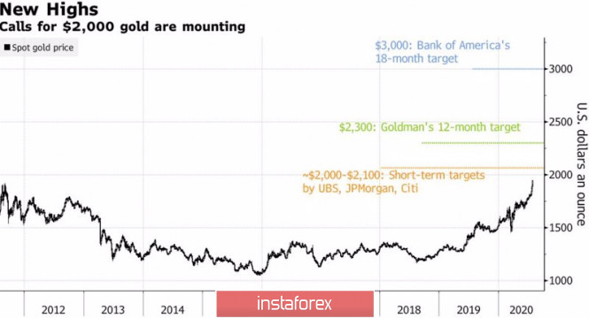 Золото: есть рекорд!ИнстаФорекс - Instaforex, 5 лет назад Золото – не очень хороший актив в периоды, когда мировая экономика не жалуется на здоровье, однако во времена рецессий он становится потрясающе спекулятивным. В своем предыдущем материале я отмечал, что драгметалл переписал исторические максимумы против основных мировых валют за исключением доллара США, как оказалось, ждать оставалось недолго. Новый рекорд против «американца» превышен на $60 за унцию, а фьючерсным контрактам удалось достигнуть отметки $2000 за унцию. Что дальше? Мнения на этот счет расходятся. JP Morgan считает, что золото, вероятнее всего, достигло пика или на расстояние вытянутой руки подошло к нему и начнет стабилизироваться на текущих уровнях, в то время как другие банки ожидают от него продолжения ралли. Goldman Sachs повысил свой прогноз на 12 месяцев с $2000 до $2300, Citigroup отмечает, что текущий цикл уникален и драгметалл будет торговаться в более высоком ценовом диапазоне, чем в настоящее время, а BofA Merrill Lynch верит в достижение отметки $3000 за унцию в течение следующих 18 месяцев. Динамика золота и прогнозы Во времена, когда правительства опускают реальные ставки по долговым обязательствам до исторических минимумов, центробанки обесценивают свои денежные единицы, а статус доллара США как основной резервной валюты находится под угрозой, золото чувствует себя как рыба в воде. Тем более что на рынок начинает возвращаться идея резкого ускорения инфляции. До сих пор крупные банки предпочитали не ворошить прошлое и не вспоминать, что масштабный монетарный стимул от ФРС и других регуляторов может взвинтить потребительские цены, так как в 2008-2011 эта идея оказалась ошибочной. Тогда золото достигло рекордного максимума в $1921 за унцию благодаря вере, что расширение денежной массы спровоцирует ускорение инфляции и рост спроса на инструменты, которые позволяют хеджировать связанные с ней риски. В настоящее время инфляционные ожидания растут как на дрожжах, что способствует падению реальной доходности долговых обязательств и ралли XAU/USD. Ставки по облигациям ведут себя так, как будто ФРС уже таргетирует кривую доходности, и стоит Джерому Пауэллу и его коллегам на июльском заседании проявить терпимость к потенциальному разгону CPI и PCE, как золото может рвануть к $2000 за унцию. Уже на спот-рынке. Динамика золота и реальных ставок по облигациям Ничуть не меньшее значение для «быков» по драгметаллу имеет слабость доллара США. Номинированное в американской валюте золото уверенно идет на север, когда индекс USD пикирует в пропасть. В этом отношении повышенный спрос на евро, доля которого в структуре индекса составляет 57%, - хорошая новость для покупателей XAU/USD. Воодушевленная восстановлением экономики еврозоны и фискальным стимулом ЕС единая европейская валюта рвет и мечет, подтягивая за собой остальные активы валютного и товарного рынков. После выполнения ранее озвученного таргета на $1920, технически золото готово замахнуться на целевой ориентир на 361,8% по паттерну AB=CD, который расположен вблизи отметки $2025 за унцию. Покупаем драгметалл на откатах к $1920-1925 и к $1890. Золото, дневной график Материал предоставлен компанией InstaForex - www.instaforex.com |