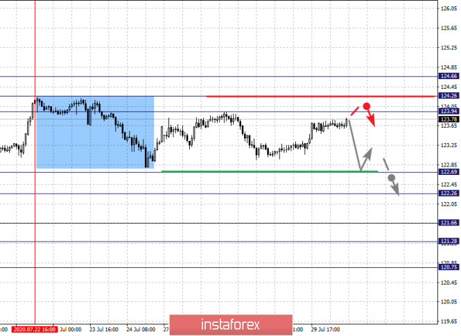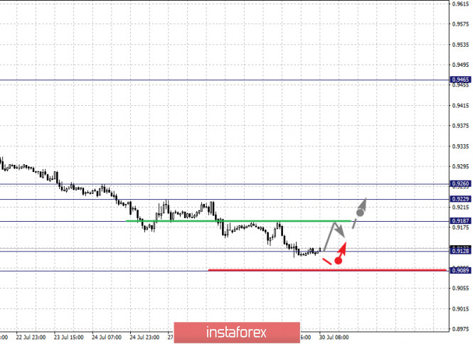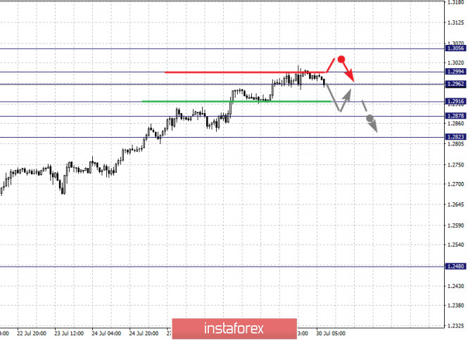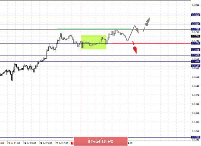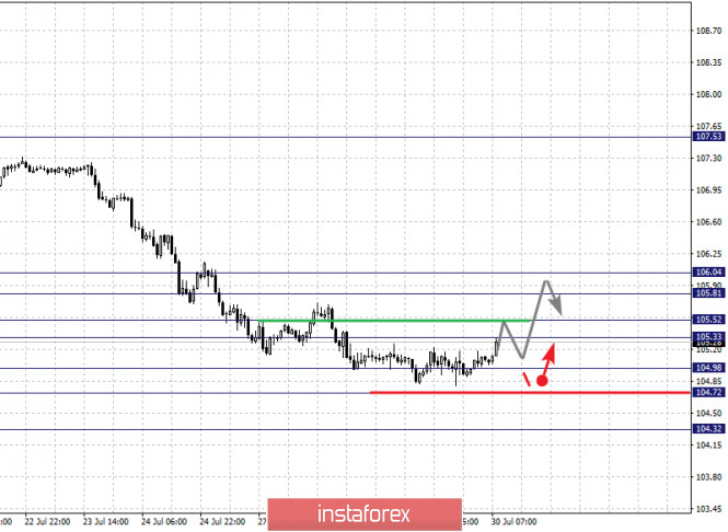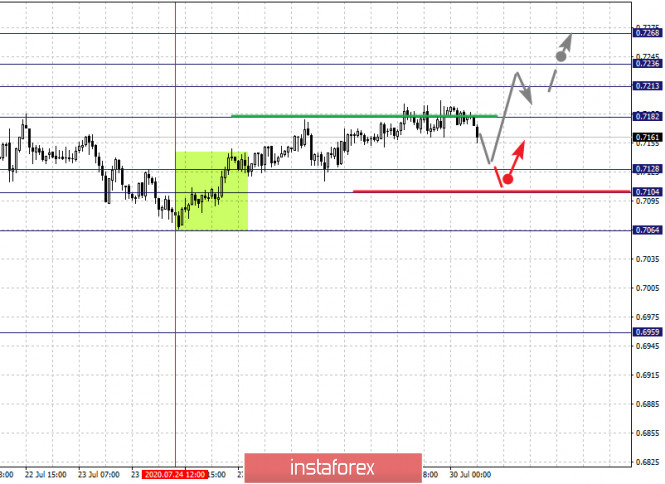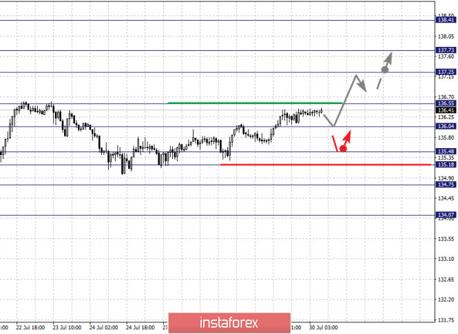Фрактальный анализ по основным валютным парам на 30 июляИнстаФорекс - Instaforex, 5 лет назад Здравствуйте, уважаемые коллеги. По паре Евро/Доллар цена оформила локальную структуру для верха от 28 июля, уровень 1.1824 ключевое сопротивление, уровень 1.1727 ключевая поддержка. По паре Фунт/Доллар основного развития восходящей тенденции ожидаем после пробоя 1.2994, уровень 1.2916 ключевая поддержка. По паре Доллар/Франк цена находится возле предельных значений для нисходящей структуры, в связи с чем ожидаем откат кверху. По паре Доллар/Иена развития восходящей коррекции ожидаем после пробоя 105.52. По паре Евро/Иена следим за нисходящей структурой от 22 июля, уровень 123.94 ключевая поддержка. По паре Фунт/Иена продолжения движения кверху ожидаем после пробоя 136.55, уровень 135.50 ключевая поддержка. Прогноз на 30 июля: Аналитический обзор валютных пар в масштабе Н1: По паре Евро/Доллар ключевыми уровнями в масштабе Н1 являются: 1.1869, 1.1824, 1.1798, 1.1727, 1.1695, 1.1668, 1.1636 и 1.1614. Здесь цена оформила небольшую локальную структуру для верха от 28 июля. Краткосрочное восходящее движение ожидаем в диапазоне 1.1798 – 1.1824, пробой последнего значения позволит рассчитывать на движение к потенциальной цели – 1.1869, от этого уровня ожидаем откат книзу. Уровень 1.1727 является ключевой поддержкой для верха, его пробой приведет к развитию нисходящей структуры, в данном случае первая цель – 1.1695, пробой которой позволит рассчитывать на движение к 1.1668, возле этого уровня консолидация. Пробой уровня 1.1666 приведет к выраженному нисходящему движению, здесь цель – 1.1636, в коридоре 1.1636 – 1.1614 консолидация, а также до уровня 1.1636 ожидаем оформления выраженных начальных условий для нисходящего цикла. Основная тенденция – восходящая структура от 10 июля, локальный потенциал от 28 июля Торговые рекомендации: Buy: 1.1798 Take profit: 1.1824 Buy: 1.1826 Take profit: 1.1869 Sell: 1.1727 Take profit: 1.1695 Sell: 1.1666 Take profit: 1.1636 По паре Фунт/Доллар ключевыми уровнями в масштабе Н1 являются: 1.3056, 1.2994, 1.2962, 1.2916, 1.2878 и 1.2823. Здесь мы продолжаем следить за восходящей структурой от 14 июля. Краткосрочное восходящее движение ожидаем в коридоре 1.2962 – 1.2994. Потенциальным значением для верха считаем уровень 1.3056, по достижении которого ожидаем консолидацию, а также откат книзу. Краткосрочное нисходящее движение возможно в коридоре 1.2916 – 1.2878, пробой последнего значения приведет к углубленной коррекции, здесь цель – 1.2823, этот уровень является ключевой поддержкой для верха. Основная тенденция – восходящий цикл от 14 июля. Торговые рекомендации: Buy: Take profit: Buy: 1.2996 Take profit: 1.3055 Sell: 1.2915 Take profit: 1.2878 Sell: 1.2876 Take profit: 1.2825 По паре Доллар/Франк ключевыми уровнями в масштабе Н1 являются: 0.9260, 0.9229, 0.9187, 0.9128 и 0.9089. Здесь мы следим за развитием нисходящего цикла от 16 июля, на текущий момент цена находится возле предельных значений. Краткосрочное нисходящее движение ожидаем в диапазоне 0.9128 – 0.9089, отсюда ожидаем ключевой разворот кверху. Уровень 0.9187 является ключевой поддержкой для нисходящей структуры, его пробой приведет к развитию восходящей коррекции, в данном случае цель – 0.9229. Потенциальным значением для верха считаем уровень 0.9260, по достижении которого ожидаем консолидацию и формирование начальных условий для восходящего цикла. Основная тенденция – нисходящая структура от 16 июля Торговые рекомендации: Buy: 0.9188 Take profit: 0.9228 Buy: 0.9230 Take profit: 0.9260 Sell: Take profit: Sell: 0.9126 Take profit: 0.9090 По паре Доллар/Иен