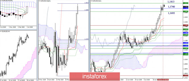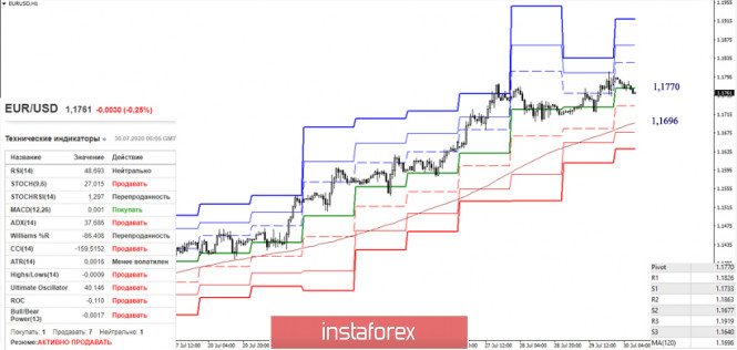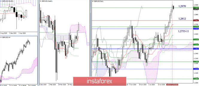 EUR/USD и GBP/USD 30 июля – рекомендации технического анализаИнстаФорекс - Instaforex, 5 лет назад EUR/USD Пара продолжает работать в зоне притяжения и влияния встреченных целевых ориентиров – 1,1695 – 1,1740 – 1,1813 (недельная цель на пробой облака Ишимоку + нижняя граница месячного облака). Результат взаимодействия повлияет на дальнейшее развитие движения и откроет перед победителем новые перспективы. Основной интерес игроков на повышение, в случае преодоления сопротивлений, будет направлен на подъём к верхней границе месячного облака (1,2166). Игроки на понижение при формировании полноценного отбоя от встреченных сопротивлений будут стремиться исполнить для начала результативную коррекцию. Начальными ориентирами в данном направлении станут уровни поддержки дневного креста (1,1604 Тенкан + 1,1496 Киджун), а далее пару ждут недельные уровни (Тенкан 1,1453 + Фибо Киджун 1,1359) усиленные месячным Фибо Киджуном (1,1389). На младших таймах зарождающиеся коррекционные снижения ограничиваются поддержкой центрального Пивот-уровня, благодаря чему смены предпочтений не наблюдается уже длительное время. Преимущества сохраняются на стороне игроков на повышение. В настоящий момент пара вновь работает в зоне коррекции, тестируя поддержку центрального Пивот-уровня дня (1,1770). Пробой уровня делает основным понижательным ориентиром недельную долгосрочную тенденцию (1,1696), промежуточную поддержку сегодня можно отметить на 1,1733 (S1). Закрепление ниже (1,1696) способно внести изменения в действующий баланс сил на Н1. В случае очередного завершения нисходящей коррекции и при продолжении подъёма ориентирами внутри дня будут служить классические Пивот-уровни 1,1826 (R1) – 1,1863 (R2) – 1,1919 (R3). GBP/USD Фунт исполнил подъём до верхней границы недельного облака (1,2970). Данное сопротивление достаточно сильное и многое определяет. Пробой облака и надёжное закрепление в бычьей зоне относительно облака откроет новые горизонты перед игроками на повышение и сформирует новые повышательные цели. Формирование отбоя ограничит текущие достижения игроков на повышение, вернув актуальность поддержкам, расположение которых в настоящий момент позволяет исполнить достаточно результативное снижение. Ближайшие поддержки старших таймов находятся на 1,2812 (исторический экстремум) и 1,2711-35 (дневной Тенкан + месячный Фибо Киджун + недельный Сенкоу Спан Б). Преимущество на Н1 принадлежит игрокам на повышение. На младших они уже длительное время ограничивают глубину коррекции центральным Пивот-уровнем или поддержкой S1. На текущий момент наблюдается развитие очередной нисходящей коррекции. Медведи сумели спуститься под центральный Пивот-уровень (1,2973), следующая поддержка находится на 1,2932 (S1). Но более значимой является поддержка недельной долгосрочной тенденции (1,2858), преодоление уровня способно повлиять на действующий баланс сил. Так как сегодня центральный Пивот-уровень (1,2973) усилен сопротивлением верхней границы недельного облака (1,2970), то игрокам на повышение будет сложно преодолеть влияние и притяжение уровня и продолжить подъём. Если всё же это произойдёт, несмотря на приоритет сегодня медвежьих настроений, то следующими повышательными ориентирами внутри дня станут классические Пивот-уровни R1 (1,3033) – R2 (1,3073) – R3 (1,3134). Ichimoku Kinko Hyo (9.26.52), Pivot Points (классические), Moving Avarage (120) Материал предоставлен компанией InstaForex 