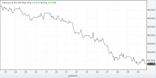 Доллар США снизился до нового 25-месячного минимума к корзине конкурентов и доходил до отметки 93,30. Несмотря на сегодняшний отскок, рыночные эксперты считают, что у доллара еще есть пространство для снижения. Это связано с действиями ФРС и ее готовностью еще больше смягчить денежно-кредитную политику.