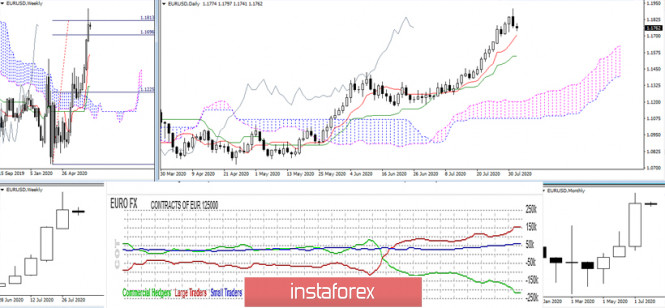 Последний отчет СОТ (Commitments of Traders). Недельные перспективы для EUR/USDИнстаФорекс - Instaforex, 5 лет назад Последний отчет СОТ (Commitments of Traders). Недельные перспективы для EUR/USD По евро вновь наблюдается внушительное увеличение открытого интереса (+42753, открытый интерес 678965). Данные последнего отчёта СОТ (Commitments of Traders от 28.07.20) показали сохранение тенденции – крупные игроки рынка продолжают активно приобретать евро, при этом нужно отметить, что прирост позиций наблюдается по всем направлениям. В итоге в очередной раз всем удалось увеличить чистые позиции (Non-Commercial + 32512; Commercial +36841; итоговая чистая позиция общего отчета + 4329; Dealer Intermediary + 43124). Единственное, здесь нужно обратить внимание, что, несмотря на рост процентного соотношения в пользу игроков на повышение, у отдельных групп поддерживающих текущий восходящий тренд, итоговое соотношение позиций long и short в общем отчете не изменилось и осталось на уровне (8,8%) с преобладанием коротких позиций. Основной вывод Тенденция сохраняется. По данным на отчетный период (28.07.20) приоритет действующего трендового движения принадлежит игрокам на повышение. Тем не менее быкам не удаётся изменить медвежье преимущество и распределение сил в TOTAL позиции. В результате в ближайшее время возможно замедление тренда или формирование коррекционного снижения. Техническая картина Восходящий тренд позволил паре отработать цель на пробой недельного облака и весьма оптимистично закрыть июль месяц. Формирующиеся бычьи облака Ишимоку продолжают рост в направлении восходящего тренда. Сопротивление исполненной цели поспособствовало наметившемуся в пятницу торможению. На текущей рабочей неделе результат взаимодействия с целью (100% 1,1813) продолжит своё формирование. Игрокам на повышение для сохранения преимуществ нужно закрепиться выше отработанной цели, тогда у них появятся новые перспективы – месячное облако и месячная цель. Игроки на понижение, скорее всего, будут стремиться сохранить дневное торможение в недельном формате, превратив его в нисходящую коррекцию. На младших временных интервалах в настоящий момент тестируется недельная долгосрочная тенденция (1,1773). Закрепление ниже изменит действующий баланс сил на Н1. Понижательными ориентирами внутри дня в этом случае станут поддержки классических Пивот-уровней 1,1724 – 1,1669 – 1,1577. Сохранение недельной тенденции и возврат на сторону игроков на повышение центрального Пивот-уровня (1,1816) могут поспособствовать восстановлению бычьих позиций и преимуществ. Основной задачей в этом случае станет обновление максимального экстремума прошлой недели и месяца (1,1909). Ichimoku Kinko Hyo (9.26.52), Pivot Points (классические), Moving Avarage (120) Материал предоставлен компанией InstaForex - www.instaforex.com |