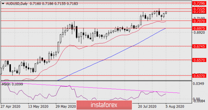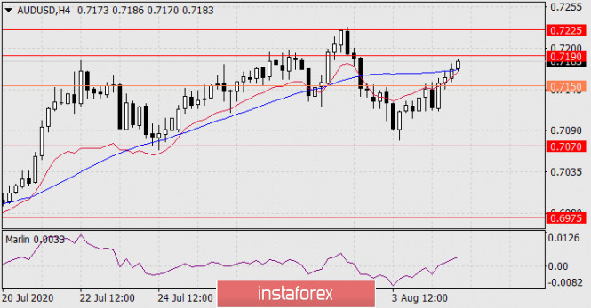 Прогноз по AUD/USD на 5 августа 2020 годаИнстаФорекс - Instaforex, 5 лет назад AUD/USD Сигнальная линия осциллятора Марлин развернулась вверх, но не настолько сильно, чтобы стимулировать цену на создание четырехкратной дивергенции. До выхода цены из целевого диапазона 0.7190-0.7225 вверх будет сохраняться в действии разворотный сценарий по австралийской валюте с последующим среднесрочным снижением.