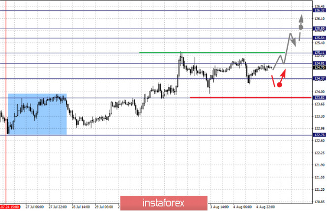 Фрактальный анализ по основным валютным парам на 5 августаИнстаФорекс - Instaforex, 5 лет назад Здравствуйте, уважаемые коллеги. По паре Евро/Доллар основного развития нисходящей структуры от 21 июля ожидаем после пробоя 1.1678, уровень 1.1842 ключевая поддержка. По паре Фунт/Доллар продолжения движения книзу ожидаем после пробоя 1.3044, уровень 1.3136 ключевая поддержка. По паре Доллар/Франк цена находится в коррекции от восходящей структуры, уровень 0.9112 ключевая поддержка. По паре Доллар/Иена цена формирует выраженный потенциал для верха от 31 июля, уровень 106.20 ключевое сопротивление, уровень 105.33 ключевая поддержка. По паре Евро/Иена следим за восходящей структурой от 24 июля, основного движения ожидаем после пробоя 125.11, уровень 123.82 ключевая поддержка. По паре Фунт/Иена продолжения движения кверху ожидаем после пробоя 138.95, уровень 137.73 ключевая поддержка. Прогноз на 5 августа: Аналитический обзор валютных пар в масштабе Н1: По паре Евро/Доллар ключевыми уровнями в масштабе Н1 являются: 1.1911, 1.1842, 1.1805, 1.1733, 1.1678, 1.1613 и 1.1568. Здесь цена формирует потенциал для нисходящего движения от 31 июля. Продолжения движения книзу ожидаем после пробоя 1.1733, в данном случае цель – 1.1678, возле этого уровня консолидация. Пробой уровня 1.1678 приведет к выраженному нисходящему движению, здесь цель – 1.1613. Потенциальным значением для низа считаем уровень 1.1568, по достижении которого ожидаем консолидацию, а также откат кверху. Краткосрочное восходящее движение возможно в коридоре 1.1805 – 1.1842, пробой последнего значения будет располагать к формированию восходящей структуры, здесь потенциальная цель – 1.1911. Основная тенденция – формирование потенциал для нисходящего движения от 31 июля Торговые рекомендации: Buy: 1.1805 Take profit: 1.1840 Buy: 1.1844 Take profit: 1.1910 Sell: 1.1733 Take profit: 1.1680 Sell: 1.1676 Take profit: 1.1615 По паре Фунт/Доллар ключевыми уровнями в масштабе Н1 являются: 1.3175, 1.3136, 1.3110, 1.3044, 1.2996, 1.2943, 1.2876 и 1.2832. Здесь цена находится в коррекции и формирует потенциал для нисходящего цикла от 31 июля. Продолжения движения книзу ожидаем после пробоя 1.3044, в данном случае цель – 1.2996, пробой которого приведет к развитию нисходящего цикла, здесь первая цель – 1.2943. Проход уровня 1.2943 должен сопровождаться выраженным нисходящим движением к уровню 1.2876. Потенциальным значением для низа считаем 1.2832, по достижении которого ожидаем консолидацию, а также откат кверху. Диапазон 1.3110 – 1.3136 является ключевой поддержкой для нисходящей структуры, его проход ценой приведет к формированию локальной восходящей структуры, в данном случае потенциальная цель – 1.3175. Основная тенденция – восходящий цикл от 14 июля, стадия коррекции Торговые рекомендации: Buy: 1.3110 Take profit: 1.3134 Buy: 1.3137 Take profit: 1.3175 Sell: 1.3044 Take profit: 1.2996 Sell: 1.2994 Take profit: 1.2944 По паре Доллар/Франк ключевыми уровнями в масштабе Н1 являются: 0.9340, 0.9297, 0.9275, 0.9240, 0.9187, 0.9146 и 0.9112. Здесь мы следим за восходящей структурой от 31 июля, на текущий момент цена находится в коррекции. Возобновления движения кверху ожидаем после пробоя 0.9187, в данном случае первая цель – 0.9240, пробой которой позволит рассчитывать на движение к 0.9275, в коридоре 0.9275 – 0.9297 консолидация цены. Потенциальным значением для верха считаем уровень 0.9340, по достижении которого ожидаем консолидацию, а также откат книзу. Краткосрочное нисходящее движение возможно в коридоре 0.9146 – 0.9112, отсюда ожидаем ключевой разворот кверху, пробой уровня 