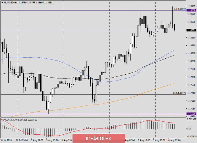 Анализ и прогноз по EUR/USD на 6 августа 2020 годаИнстаФорекс - Instaforex, 5 лет назад Здравствуйте, уважаемые коллеги! На вчерашних торгах в большей степени преобладали рисковые настроения, что позволило валютной паре EUR/USD продолжить рост, возобновлённый днём ранее. Участники рынка ожидают, что принятые крупнейшими Цетробанками стимулирующие меры будут способствовать скорейшему восстановлению мировой экономики после разрушительных последствий, вызванных вспышкой пандемии COVID-19. Также у инвесторов сильны ожидания, что уже в ближайшие месяцы появится эффективная и прошедшая все фазы тестирования вакцина против нового типа коронавирусной инфекции. Если вернуться к вчерашней статистике, то, на мой взгляд, наиболее важными стали отчёты по занятости от ADP, которые оказались значительно хуже предыдущего показателя 2369 и составили всего лишь 167 тысяч. Как известно, изменение числа занятых от ADP считаются опережающим индикатором официальных данных по занятости в несельскохозяйственных секторах американской экономики. В этой связи завтрашние Nonfarm Payrolls могут неприятно удивить и оказаться весьма и весьма слабыми. Если так и произойдёт, доллар США рискует попасть под очередную и достаточно сильную волну распродаж. Посмотрим, что произойдёт на самом деле. Ждать осталось недолго. Напомню, что завтра в 15:30 по московскому времени будет опубликована официальная трудовая статистика из США. Ещё из вчерашних событий стоит выделить выступление вице-председателя Федеральной Резервной Системы (ФРС) Ричарда Клариды. По мнению этого высокопоставленного монетарного чиновника Федрезерва, в третьем квартале начнётся восстановление экономического роста, а к концу следующего года экономика США вернётся к тем уровням, которые наблюдались до начала эпидемии COVID-19. Заглянув в сегодняшний экономический календарь, можно увидеть, что важных и значимых событий, способных повлиять на ценовую динамику евро/доллара, немного. Можно отметить лишь первичные обращения за пособием по безработице в США, которые будут опубликованы в 15:30 (мск), а несколько позднее, в 17:00 (мск), состоится выступление члена Комитета по открытым рынкам ФРС Роберта Каплана. Daily Как уже отмечалось в начале статьи, вчерашние торги завершились для валютной пары EUR/USD ростом. Попытки медведей опустить цену ниже важного уровня 1.1800 ни к чему не привели, и уже от 1.1793 пара начала подъём, показав максимальные значения на 1.1904 и завершив сессию среды на 1.1862. Несмотря на достаточно длинную верхнюю тень вчерашней свечи и неспособность завершить торги выше ещё одной важнейшей отметки 1.1900, евробыки и не думают отступать. Сегодня в моменте завершения данной статьи пара вновь тестирует на пробой сильный уровень сопротивления продавцов 1.1900, и, судя по настойчивости игроков на повышение, этот уровень может быть пробит. Впрочем, окончательные выводы относительно пробоя этой отметки будем делать уже после завершения пятничных и недельных торгов. Учитывая, что сегодня пара уже обновила предыдущие максимумы и побывала на 1.1915, вполне резонно предположить восходящий сценарий как основной. Н1 Тем не менее, глядя на картину, которая наблюдается на часовом графике, видим, что всё далеко не так непросто. Сопротивление продавцов вблизи 1.1900 в очередной раз демонстрирует свою силу. Вполне возможно, что для преодоления э