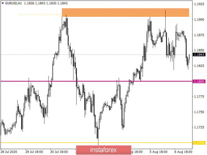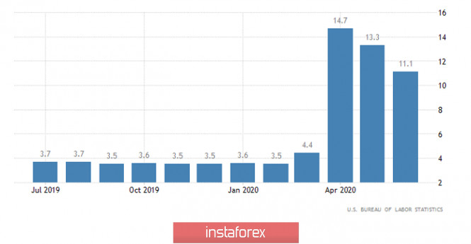 Горящий прогноз по EUR/USD на 07.08.2020 и торговая рекомендацияИнстаФорекс - Instaforex, 5 лет назад Попрыгав из стороны в сторону, единая европейская валюта решила завершить вчерашний день примерно на тех же значениях, с которых его и начинала. Именно таким образом инвесторы готовятся к самому главному событию недели - публикации доклада Министерства труда Соединенных Штатов. А самое наверное интересное, так это то, что фактически, вчера были все основания для коррекции и серьезного ослабления единой европейской валюты. Действительно, у доллара хватало поводов для оптимизма, так как данные по заявкам на пособия по безработице оказались существенно лучше прогнозов. В частности, первичные заявки, число которых должно было увеличиться с 1 435 тыс. до 1 450 тыс., уменьшились до 1 186 тыс. Число же повторных заявок на пособия по безработице сократилось с 16 915 тыс. до 16 107 тыс., хотя должны были лишь до 16 900 тыс. И вполне очевидно, что в преддверии публикации доклада Министерства труда Соединенных Штатов, заметное сокращение числа заявок, является исключительно позитивным фактором, внушающим веру в то, что его содержание окажется лучше прогнозов. Так что, это должно было способствовать укреплению доллара. Однако, мы этого не увидели, так как инвесторы держат в голове недавние данные по занятости от ADP, которые сильно всех напугали. Так что рисковать никто не захотел, и фактически, рынок просто стоял на месте. Число повторных заявок на пособия по безработице (Соединенные Штаты): Итак, чуть ли не единственное, на что будут смотреть, так это непосредственно уровень безработицы, который должен снизиться с 11,1% до 10,5%. Еще, интерес представляет число новых рабочих мест, созданных вне сельского хозяйства, коих должно оказаться аж 1 620 тыс. И все это носит сугубо позитивный характер. Не важно, что уровень безработицы невероятно высок, тут важна сама тенденция. Все прочие же показатели состояния рынка труда сейчас вообще никого не волнуют. Так как не важно что там происходит с зарплатами или продолжительностью рабочей недели. Сейчас самое главное, чтобы безработица пошла вниз. Без этого, другие показатели, никакого значения не имеют. О них будут думать позже. Более того, рынок сильно перегрет, и доллар чрезмерно перепродан. Так что рынку нужна коррекция. Таким образом, содержание доклада Министерства труда, должно стать поводом для этой самой коррекции. И во многом, именно эти самые ожидания и провоцируют наметившееся уже сейчас укрепление доллара. Пусть и не сильное. Единственное что сейчас пугает инвесторов, так это недавние данные ADP по занятости. Они намекают на то, что содержание доклада Министерства труда может оказаться несколько не таким, как прогнозируется. Но речь не идет о возможности роста уровня безработицы. Скорее лишь о том, что она снизиться не так сильно. Однако все равно, речь идет исключительно об улучшении ситуации на рынке труда, так что вопрос стоит лишь о масштабах укрепления доллара. Уровень безработицы (Соединенные Штаты): Валютная пара евро/доллар в очередной раз нашла точку сопротивления в районе 1,1900, где на систематической основе возникло замедление и как результата обратный ход цены. Взаимодействие участников рынка с координатам 1,1900 говорит о неуверенности в дальнейшем восходящем ходе, что теоретически может привести к более значительно
