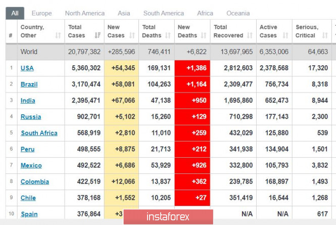Торговый план 13.08.2020. EURUSD. Covid19 - вторая волна не отступает. Важные новостиИнстаФорекс - Instaforex, 5 лет назад Коронавирус в мире: вторая волна снова на максимуме. Ситуация не улучшается в самых проблемных странах - США, Бразилии, Индии. Новые максимумы новых случаев. Число смертей около +1000 во всех трех странах в сутки. В США - это полный провал борьбы с эпидемией. Я полагаю, что Трампа не выберут из-за этого в ноябре - а это вызовет значительный пересмотр налоговой политики после прихода к власти демократа Байдена. Это плохо для доллара и рынка США. EURUSD: Евро снова начинает рост. Мы купили от 1.1810, стоп 1.1765. Сегодня важные новости - в 15:30 мск выйдет отчет по занятости в США. Важный вопрос - подтвердится ли еще раз тенденция резкого замедления на рынке труда? Если так, то это негативно для доллара - и евро может двинуться на 1.1900 и далее на 1.2000. Материал предоставлен компанией InstaForex - www.instaforex.com |