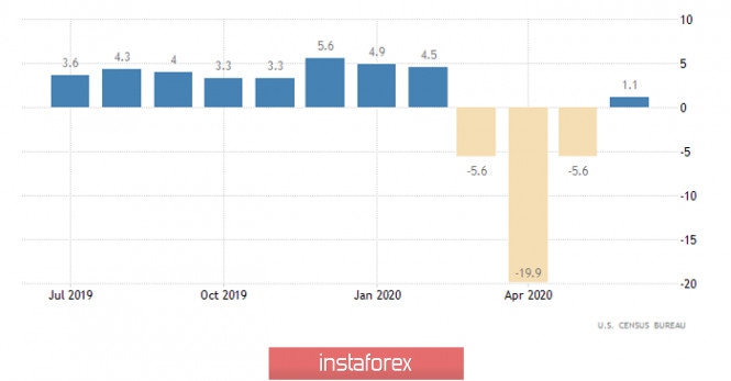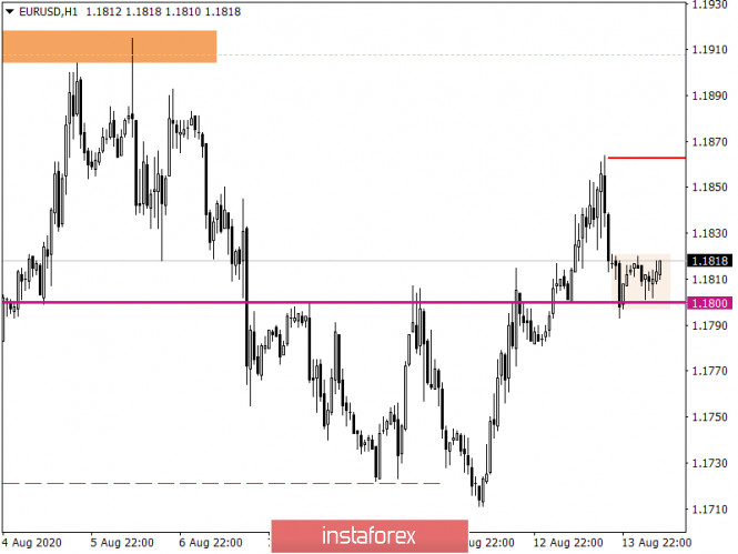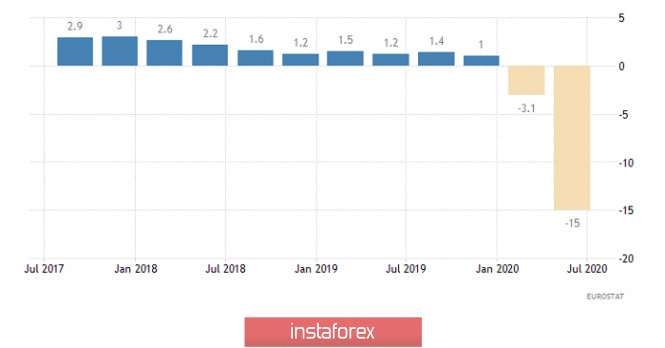 Горящий прогноз по EUR/USD на 14.08.2020 и торговая рекомендацияИнстаФорекс - Instaforex, 5 лет назад Участники рынка во многом продолжают вести себя неадекватно, тем самым лишь ухудшая положение дел. Рынок и так сильно перегрет, а доллар катастрофически перепродан. Но даже откровенно говоря хорошая американская статистика не может привести участников рынка в чувство. Так что практически весь день мы наблюдали за тем, как единая европейская валюта упорно шла вверх. И даже на осознание того факта, что что-то не так, и американская статистика оказалась намного лучше прогнозов, участникам рынка потребовалось некоторое время. А из всего этого следует, что риски лишь возрастают, и когда до инвесторов дойдет, что что-то идет не так, обвал единой европейской валюты будет носить катастрофический характер. Да такой, что тоже будет противоречить здравому смыслу. Говоря же непосредственно об американской статистике, то она действительно оказалась существенно лучше прогнозов. Так, число первичных заявок на пособия по безработице, которое должно было сократиться с 1 191 тыс. до 1 150 тыс., уменьшилось до 963 тыс. То есть, количество первичных обращений, впервые с марта масяца, опустилось ниже одного миллиона, что можно расценивать как исключительно позитивный фактор. Кроме этого, число повторных заявок на пособия по безработице сократилось с 16 090 тыс. до 15 486 тыс. Ожидалось снижение до 15 800 тыс. Так что на лицо явная тенденция на восстановление рынка труда. Причем более высокими темпами, нежели ожидалось. Однако, это почти никак не повлияло на рынок. Ведь хоть какой-то откат начался лишь спустя пару часов после публикации данных по заявкам на пособия по безработице. Да и откатом назвать это сложно, так как смогли отыграть лишь половину дневного роста единой европейской валюты Число повторных заявок на пособия по безработице (Соединенные Штаты): Судя по всему, инвесторов пока что не сильно заботит американская статистика. Точнее говоря, ее не особо-то и берут в расчет. Скорее всего, речь идет о беспокойстве инвесторов относительно итогов предстоящих президентских выборов, так как после них, возможна кардинальная перестройка экономической политики Соединенных Штатов. А столь резкие шаги, не особо-то и радуют инвесторов. Тем более, что они действительно пока не понимают, чего же им ждать. В этой связи, гораздо больший вес приобретает европейская статистика. правда сегодня она не особо-то и поможет, так как публиковаться будет лишь вторая оценка ВВП зоны евро за второй квартал. А она должна совпасть с первой оценкой, показавшей ускорение темпов экономического спада с -3,1% до -15,0%. Во многом, рынок уже учел столь существенное ускорение темпов спада. Кроме того, нужно признать, что масштабы спада экономики в Европе заметно меньше, нежели в Соединенных Штатах. Так что даже если какая-то реакция на эти данные и последует, то она будет несущественной. Да и не продлиться долго. Темпы роста ВВП (Европа): Скорее всего и американская статистика, которая уже не первый день подряд выходит существенно лучше прогнозов, не сможет изменить общий настрой на дальнейшее укрепление единой европейской валюты. А ведь темпы роста розничных продаж должны ускориться с 1,1% до 1,9%. То есть, в Соединенных Штатах имеется рост занятости, инфляции и потребительской активности. Это же просто замечател