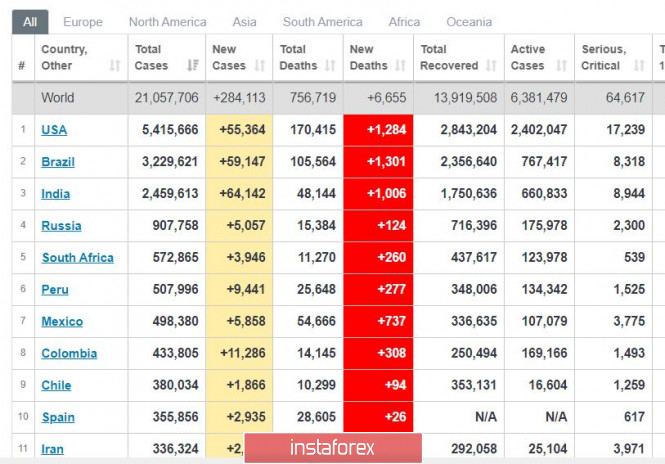 Торговый план 14.08.2020. EURUSD. Covid19 в мире. Евро консолидируетсяИнстаФорекс - Instaforex, 5 лет назад Коронавирус: вторая волна остановилась около максимумов. С одной стороны, нет ускорения роста - и это хорошо. Смертность упала с апреля - и это тоже хорошо. Но в трёх анти-лидерах - США, Бразилия, Индия - более +55 К случаев в сутки (в 10 раз больше, чем в России) - и смертей не менее +1000 в сутки в каждой стране. В России уже есть вакцина, однако её сильно критикуют - её можно применять только людям до 60 лет - то есть основная группа риска не защищена. Плюс очень вероятны побочные последствия. Вакцинация начнется осенью. Евро под сильным давлением продавцов, но пока держится. Мы продолжаем держать покупки от 1.1810. В случае полного разворота вниз продаем от 1.1710. Материал предоставлен компанией InstaForex - www.instaforex.com |
