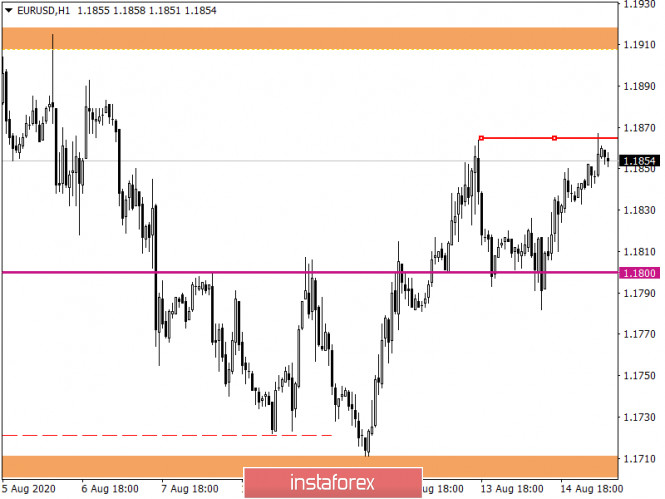 Горящий прогноз по EUR/USD на 17.08.2020 и торговая рекомендацияИнстаФорекс - Instaforex, 5 лет назад Участники рынка, как и прежде, следуют в границах бокового канала 1,1700/1,1900, где американский доллар находится под давлением распродаж уже несколько недель подряд. Ситуация интересна тем, что технические и фундаментальные факторы игнорируются рынком, что усугубляет ситуацию и может привести к неконтролируемым ценовым изменениям в будущем. Минувшая торговая неделя завершилась статистическими данными по Европе и Соединенным Штатам, где вторая оценка ВВП зоны евро во втором квартале подтвердила ускорение темпов экономического спада с -3,1% до -15,0%, что конечно же трудно назвать хорошей новостью. Однако, рынок давно уже учел этот прискорбный факт, и заложил его в стоимость единой европейской валюты. Да и других валют тоже. Тем не менее, все это не привело к каким-то серьезным изменениям на валютном рынке. Во-первых, данные совпали с ожиданиями. Во-вторых, несмотря на серьезный экономический спад в Европе, его масштабы существенно меньше, нежели в США. Так что единая европейская валюта смотрится явно предпочтительнее. Наиболее интересным событием пятничного дня стала публикация данных по розничным продажам и промышленному производству в Соединенных Штатах. Так вот темпы роста розничных продаж в США резко замедлились, рост за июль составил 1,2%, при ожидании 1,9%. Июньские данные пересмотрели в лучшую сторону 7,5% ---> 8,4%, но это никак не изменила ситуацию. Промышленное производство США должно было увеличиться на 2,8% за июль, но вместе этого ускорение до 3,4%, а предыдущие данные за июнь пересмотрели с 5,4% до 5,7%. При всем массиве статданных, доллар продолжил терять в стоимости, в этот раз оправдано, если отталкиваться от показателей розничных продаж. Торговая неделя начинается с пустого экономического календаря, ближайшая активность в плане статистических данных ожидает нас со среды. С точки зрения технического анализа, движение цены имеет зацикленную амплитуду, между границами 1,1700/1,1900, где верхняя часть канала (1,1800/1,1900) стала основной платформой для колебаний. Как долго продержится заданный темп, досконально непонятно, так как еще вначале прошлой недели предвещали ослабление европейской валюту, но не тут-то было. Торговля в границах бокового канала по-прежнему остается приоритетной позицией у трейдеров, которой стоит придерживаться. Относительно рыночной динамики фиксируется незначительный спад волатильности, что считается временным явлением на рынке. Можно предположить, что сближение цены с максимум 13 августа 1,1864, приведет к локальному взаимодействию, где можно будет увидеть ускорение активности, а торговлю выстроить по методу пробой, либо отскок. Конкретизируя все вышесказанное в торговые сигналы: - Длинные позиции, рассматриваем в случае фиксации цены выше, чем 1,1870, с перспективой хода к 1,1900 - Короткие позиции, рассматриваем в случае фиксации цены ниже, чем 1,1840, с перспективой хода к 1,1790-1,1720. С точки зрения комплексного индикаторного анализа мы видим, что показатели технических инструментов на минутных интервалах сигнализируют о продаже за счет замедления относительно лекального максиму. Часовые интервалы сосредоточены на восходящем ходе по амплитуде бокового канала. Дневной период по-прежнему сигнализирует о покупке за счет общего направл