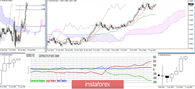 Последний отчет СОТ (Commitments of Traders). Недельные перспективы для EUR/USDИнстаФорекс - Instaforex, 5 лет назад Последний отчет СОТ (Commitments of Traders). Недельные перспективы для EUR/USD По евро за прошлый отчетный период наблюдается сохранение роста открытого интереса (706458; +1583). Группы крупных игроков смогли увеличить свои чистые позиции, но из-за того, что наблюдается разнонаправленность интересов и не равномерность усилий (Non-Commercial преимущество long позиций 28,3% ; Commercial преимущество short позиций 36,3%) медвежья TOTAL позиция (56510) в общем отчете в этот раз получила сокращение. Можно заметить, что клиенты ведущих Дилеров (Dealer Intermediary) продолжают отдавать предпочтения длинным позициям, хотя скорость усиления данной составляющей заметно сократилась по сравнению с прошлыми периодами (+14858, в прошлый раз было +29848, а до этого +43124). Основной вывод Тенденция увеличения вложений в европейскую денежную единицу сохраняется, но общее снижение активности продолжает поддерживать неопределённость и недельную консолидацию. Пара длительное время находится в зоне коррекции. Если тактика крупных игроков не изменится, то консолидация сохранится. Если произойдут изменения, то их скорей всего зафиксирует и график, и следующий отчет СОТ (Commitments of Traders). Техническая картина Несмотря на то, что на графике СОТ показателей наблюдается максимальный разрыв и расхождение доминирующих позиций крупных игроков, на графике валютной пары EUR/USD затишье и консолидация. Длительное нахождение в зоне нисходящей коррекции и отсутствие дальнейшей результативности поспособствовали тому, что ключевые элементы индикатора Ишимоку заняли горизонтальное (нейтральное) положение. Выход из зоны коррекции и надёжное закрепление выше может поспособствовать реализации бычьего потенциала прошлого месяца. Углубление коррекции и надёжное закрепление ниже действующей консолидации может привести к активному усилению медвежьих настроений. В сложившейся ситуации оба направления имеют примерно равные шансы, катализатором может стать любое более или менее значимое политическое или экономическое событие, подобных событий в последнее время предостаточно. Игроки на повышение в пятницу сохранили на младших таймах поддержку недельной долгосрочной тенденции, благодаря этому продолжают иметь перевес сил. Сегодня пара обновила максимум прошлой недели, протестировав R1 (1,1867), далее повышательными ориентирами внутри дня являются 1,1892 (R2) и 1,1935 (R3). Ключевые поддержки сегодня расположены на 1,1824 (центральный Пивот-уровень) и 1,1790 (недельная долгосрочная тенденция). Закрепление ниже изменит на Н1 действующий баланс сил, ориентирами в этом случае выступят 1,1756 (S2) и 1,1731 (S3). Ichimoku Kinko Hyo (9.26.52), Pivot Points (классические), Moving Avarage (120) Материал предоставлен компанией InstaForex - www.instaforex.com |