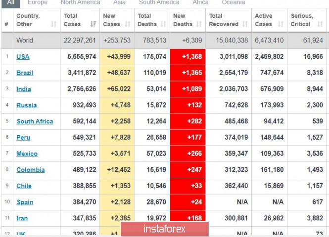 Торговый план 19.08.2020. EURUSD. Covid19 в мире, евро рвется наверхИнстаФорекс - Instaforex, 5 лет назад Коронавирус на утро 19 августа. Видим снижение пандемии в США и Бразилии, хотя и есть рост за сутки. Сейчас самая плохая ситуация в Индии с огромными +65 К новых случаев в сутки. Китай объявил о регистрации своей вакцины. Ранее объявила Россия. Реально вакцинация начнется осенью. Как регион проблемна Латинская Америка. EURUSD - евро вышел из 18-дневной консолидации наверх и может показать сильное движение. Возможен рост до 1.2360. Мы держим покупки от 1.1810. Можно купить от 1.1900. Вниз пока уровня нет. Материал предоставлен компанией InstaForex - www.instaforex.com |