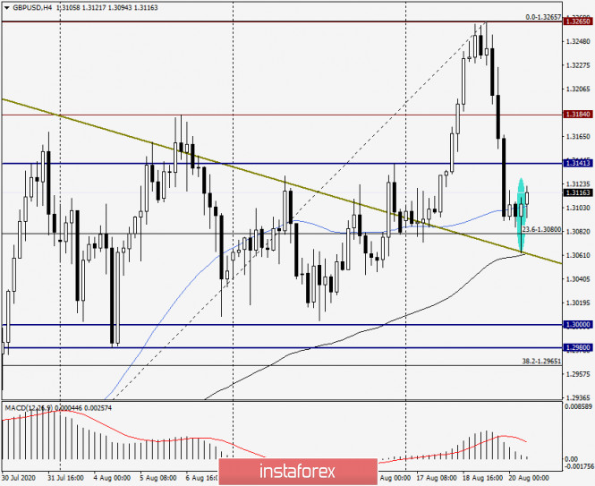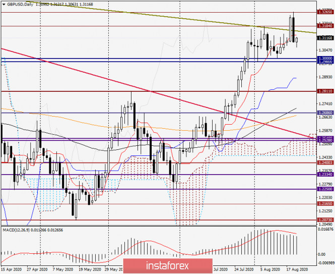 Анализ и прогноз по GBP/USD на 20 августа 2020 годаИнстаФорекс - Instaforex, 5 лет назад Доброго времени суток, уважаемые трейдеры! Вчерашняя публикация протоколов последнего заседания Федеральной Резервной Системы(ФРС) США стала поводом для укрепления американской валюты против британского фунта стерлингов. Ничего кардинально нового или неожиданного в протоколах отражено не было. Более подробно об этом можно узнать, прочитав сегодняшний обзор по евро/доллару. Чтобы не повторяться, сразу перейду к рассмотрению технической картины и торговым рекомендациям по валютной паре GBP/USD. Daily В результате сильного снижения вчерашние торги закрылись под линией Тенкан индикатора Ишимоку, что не есть хорошо для продолжения восходящего сценария. Более того, попытки пары пробить линию сопротивления долгосрочного нисходящего тренда 1.5817-1.3184 были обречены на провал. Впрочем, судить об этом можно будет только после завершения текущих недельных торгов. На момент написания данной статьи, пара фунт/доллар пытается провести коррекцию к вчерашнему падению, однако пока это у быков по фунту не очень-то и получается. В случае возобновления подъёма, ближайшее сопротивление может быть встречено в районе 1.3135-1.3155, где находится пробитая вчера линия Тенкан, а также упомянутая уже линия сопротивления 1.5817-1.3184. Если игрокам на повышения курса удастся продвинуться выше, целями станут 1.3184 и 1.3200. В то же время необходимо отметить, что, на данный момент, ключевое сопротивление продавцов проходит на 1.3265. Смею предположить. Что пока этот уровень не будет пробит и котировка не закрепиться выше, рассуждать о дальнейшем росте gbp/usd и определять следующие цели вверху не имеет смысла. Очень сильный отскок от 1.3265 показывает силу данной отметки и ставит быков по инструменту в достаточно сложное положение. Если медведи не упустят момент и продолжат давление, пара рискует опуститься в ключевую область поддержки 1.3000-1.2980. На графике хорошо видна сила и значимость данной ценовой зоны, которая уже несколько раз сдерживала попытки игроков на понижение опустить торги по футу ниже. Н4 На этом графике хорошо видно, что пара нашла сильную поддержку у долгосрочной линии сопротивления 1.5817-1.3184, 89 экспоненциальной скользящей средней, а также вблизи уровня 23.6 фибо по сетке Фибоначчи, растянутой на рост 1.2478-1.3265. Такая техническая картина больше похожа на коррекционный откат. После появления обведённой свечи, которую с полным основанием можно считать разворотной, сохраняется высокая вероятность продолжения подъёма к ложно пробитому уровню сопротивления 1.3184. Если быкам по стерлингу удастся завершить сегодняшние торги выше этого уровня, можно будет рассчитывать на ретест сопротивления 1.3265. Хотя, стоит предполагать, что отметка 1.3184 и в данной ситуации постарается оказать сопротивление попыткам роста и не пустить пару выше. Если под этим уровнем появятся разворотные модели или модель японских свечей, это станет сигналом для открытия по GBP/USD коротких позиций. Н1 На часовом графике пара пытается вернуться выше 200 экспоненциальной скользящей средней, которая оказывает цене достаточно сильное сопротивление. Если сделать это всё-таки получится, следующей целью вверху станет ложно пробитый уровень сопротивления 1.3141 прямо на котором пристроилась 89 экспоненциальная скользящая средняя. Полагаю, ч